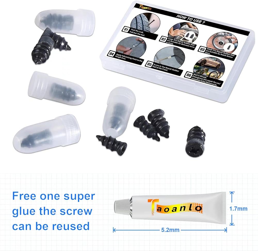 Tananlo Tire repair rubber nail:Our tire repair rubber nail inner diameter is less than 5mm,it will not damage the tire,and will not leak air.Simply insert the nail into the tire wound to perform simple and effective repair work,and the operation is convenient.(Excluding car tires).