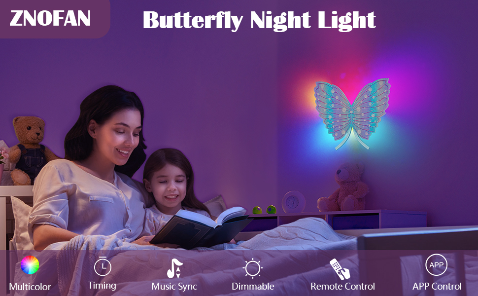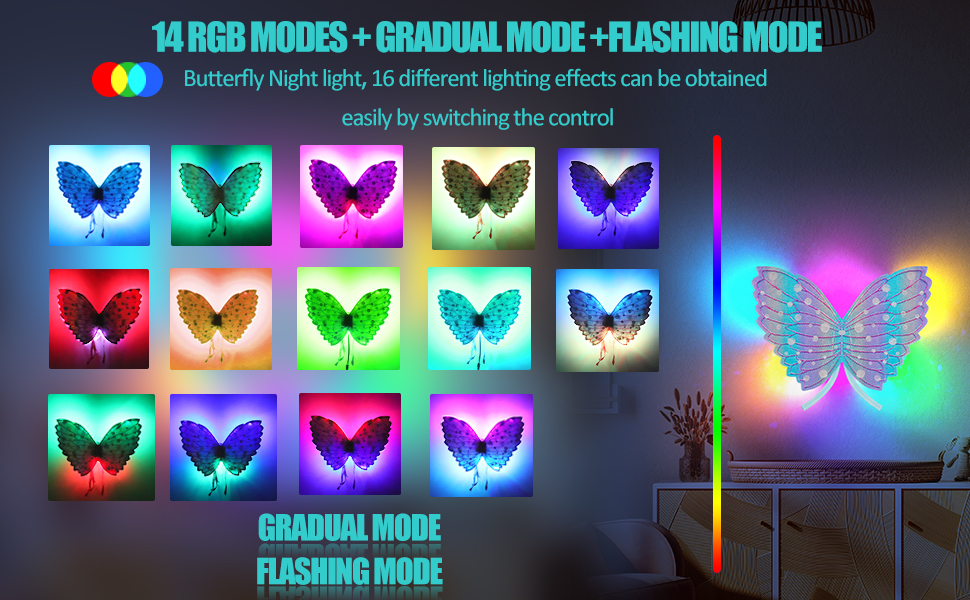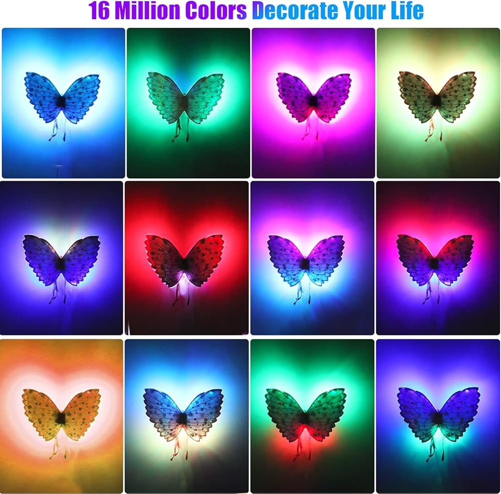 • 【16 لونًا من مصابيح LED RGB 】DDINTTAO تم تزيين ضوء الليل على شكل فراشة في غرفة النوم بشكل فراشة رائع. تم تكثيف جميع الألوان الستة عشر في جو جمالي لا يصدق.