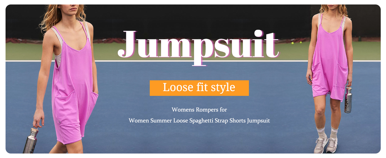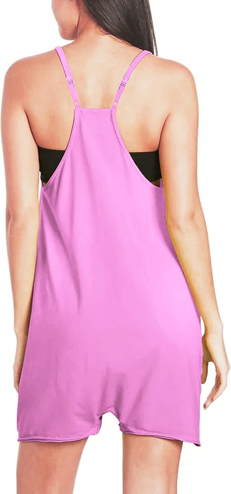 شورت نسائي صيفي كاجوال فضفاض بدون أكمام وحزام سباغيتي قابل للتمدد مع جيوب (1588-PurplePink-XXL-QB)