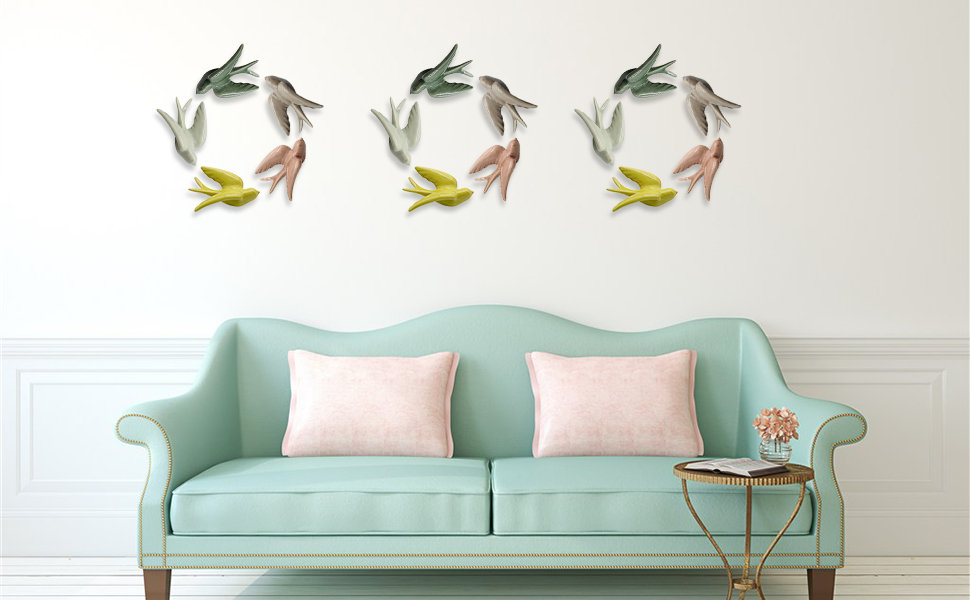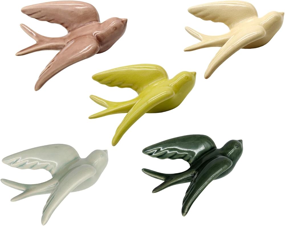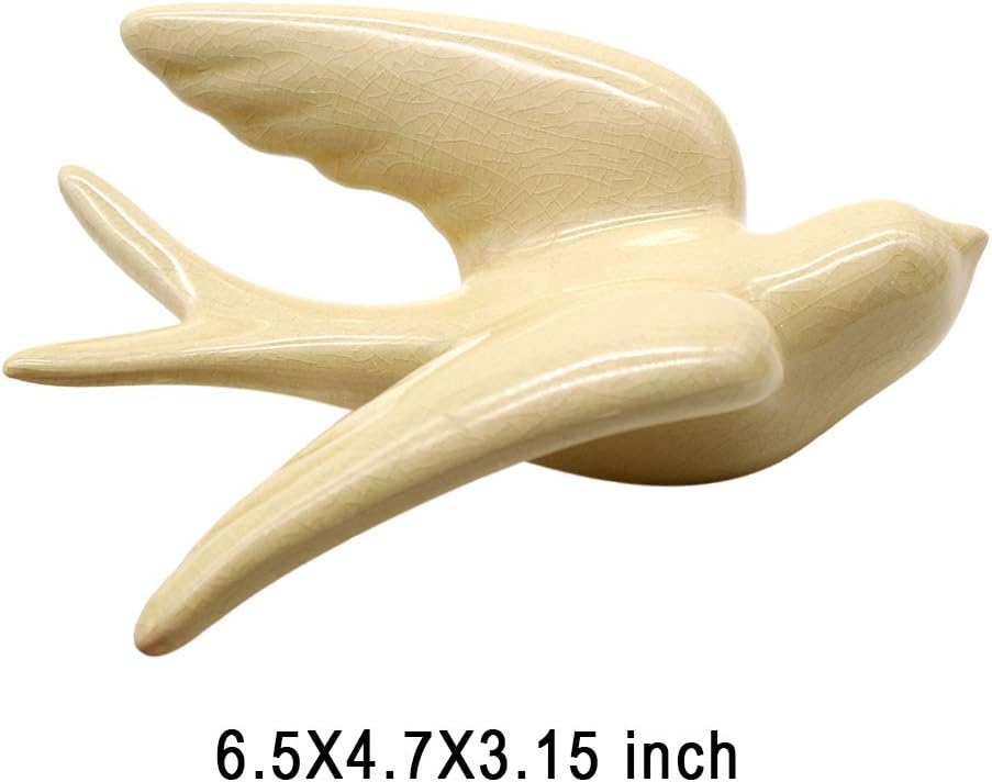 دورلوتو سيراميك معلق يبتلع عصفور الطيور ديكور الحائط ديكور ثلاثي الأبعاد بنمط أوروبي قديم متعدد الألوان لغرفة المعيشة وغرفة الطعام، بيج