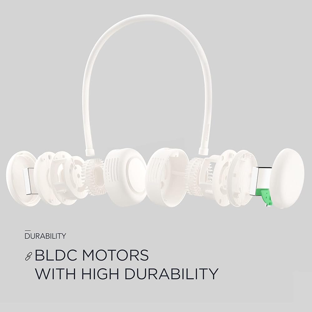 بدون شفرة 3.81 سم. مروحة محمولة قابلة لإعادة الشحن بـ 3 سرعات مع شريط رقبة مرن - تدحرج