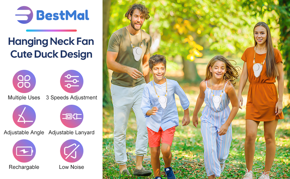 مروحة رقبة محمولة، مروحة رقبة معلقة صغيرة من BestMal مع حبل قابل للتعديل ودعامة، تصميم بطة لطيف، مروحة محمولة قابلة للشحن عبر USB، بدون استخدام اليدين، 3 سرعات رياح شخصية للمنزل والمكتب والداخل والخارج