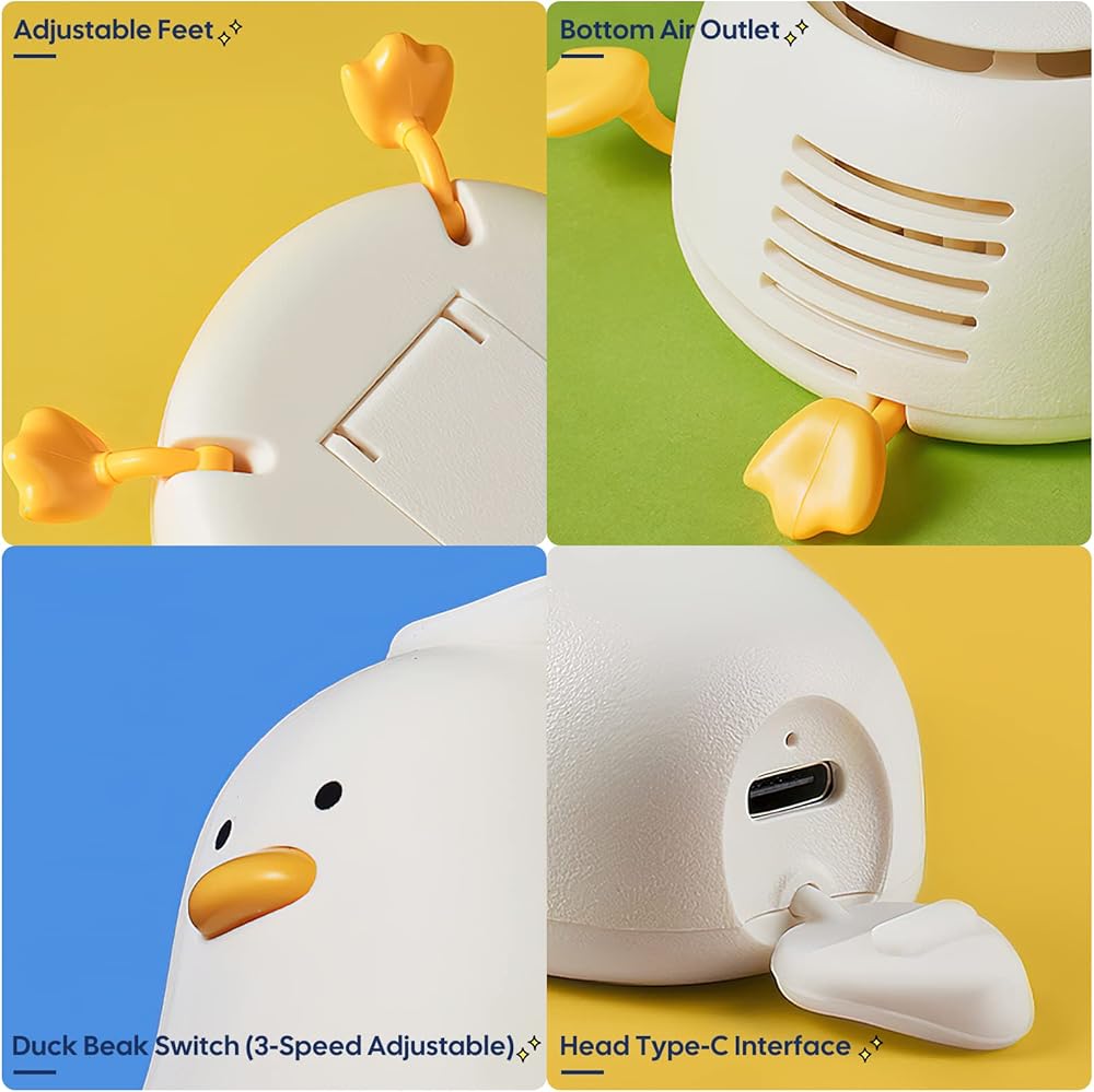 • Cute Duck Design The novel hanging neck fan gives you a different summer. The cute little duck's exterior design not only reduces the heat of summer, but also brings more fun to your daily life. There are more details in the design: there is a duckbill switch, a buttocks air outlet, an adjustable small foot bracket, and overhead charging. Give you a different experience.