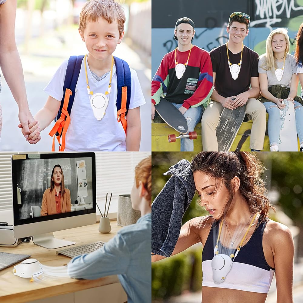 • Versatile and Perfect Gift Portable personal rechargeable fan is great for indoor and outdoor use, which can be used as a neck fan, desktop fan or handheld fan according to your needs. This small fan has a wide range of uses, suitable for hiking, commuting, work, cooking, fitness, yoga, beaches, camping, picnics, parks, and more. The perfect gift for children, family, and friends.