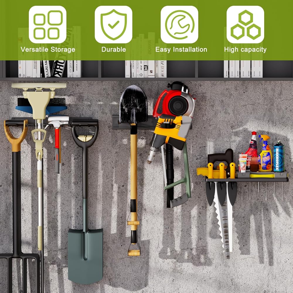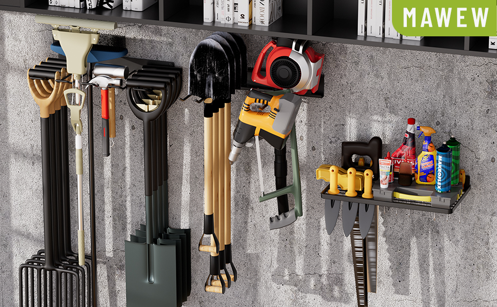 [منظم المرآب - توفير المساحة] يبلغ مقاس منظم المرآب هذا 47.5 بوصة عرض × 7.5 بوصة عمق × 1.9 بوصة ارتفاع ويتميز بفتحات متعددة للأدوات عالية السعة لدعم 50 رطلاً من المجارف والمكابس والأدوات الكهربائية والمزيد. منظم المرآب ينظم كل ما تبذلونه من المعدات أو الأدوات الموجودة على رف التخزين لتحرير مساحة الأرضية وتوفير سهولة الوصول.