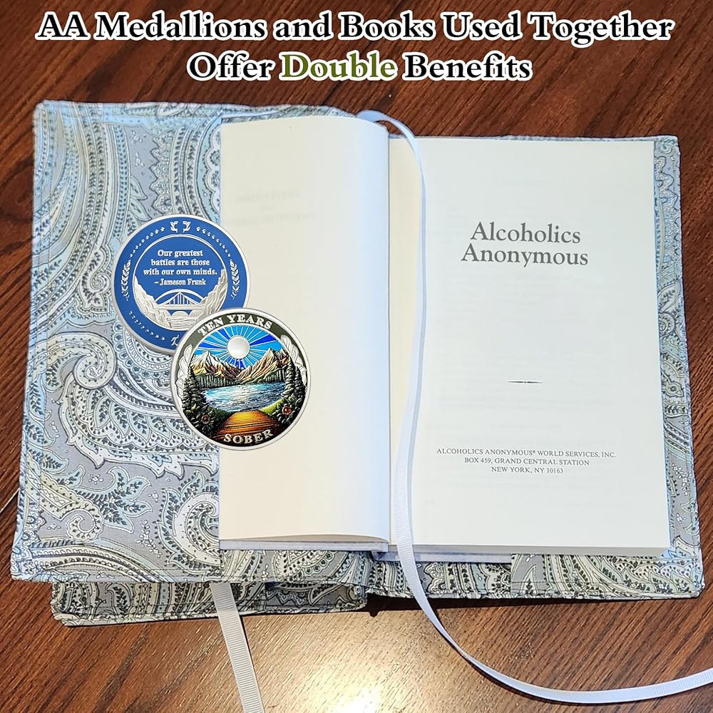 🧘🏻♀️ القوة الداخلية: الجانب الخلفي من ميداليات AA يحمل الصلاة: "أعظم معاركنا هي تلك التي نخوضها مع عقولنا." بواسطة جيمسون فرانك، فهو يؤكد على فكرة أن أصعب المعارك في رحلة الرصانة أو التعافي غالبًا ما تكون داخلية. رحلة تعافي AA وNA وHA بهدوء.
