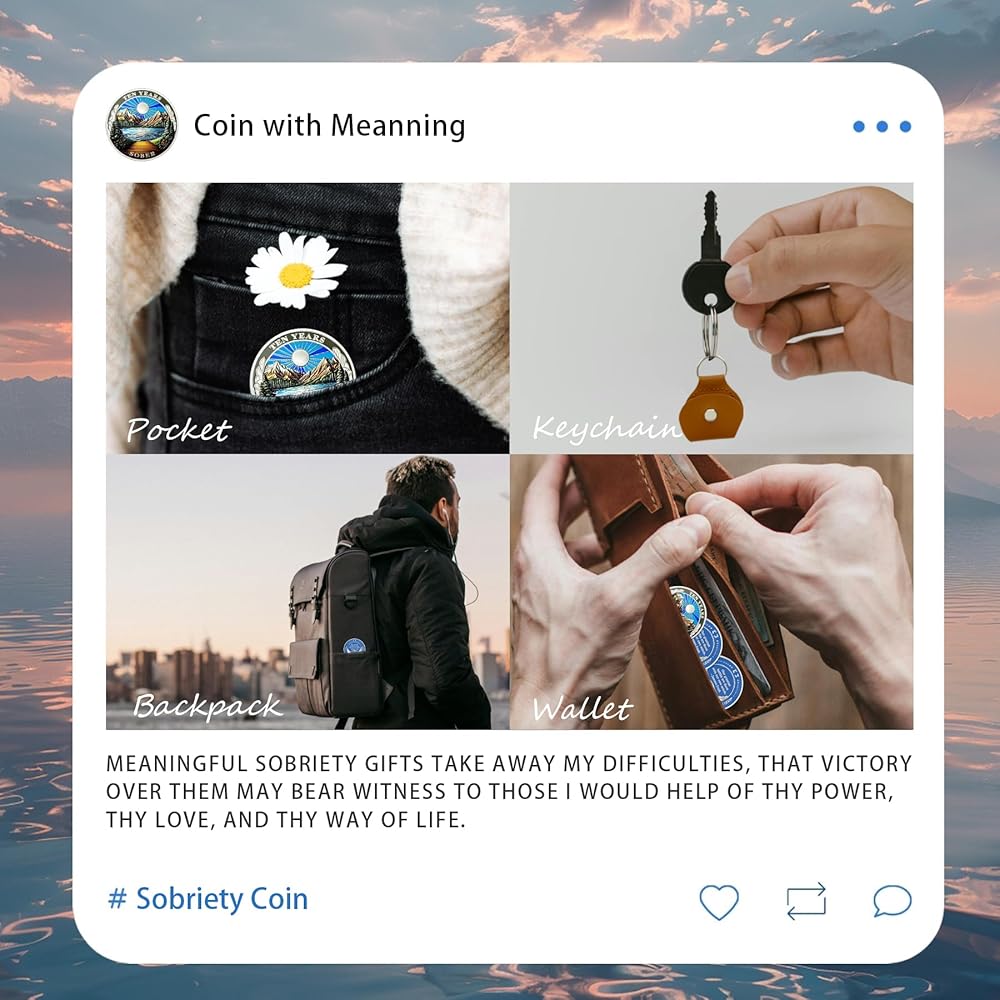 🚀اختيار متزايد: تتميز سلسلة التعافي من الإدمان بتصميمات أصلية مستوحاة من عناصر الطبيعة، وتمثل التحديات التي تمت مواجهتها طوال رحلة الرصانة، مع أنماط متاحة من سنة إلى 10 سنوات. إذا لم تشاهد عملات AA مدرجة الآن، فلا تقلق. إنهم في طريقهم إلى AMZ، لذا يمكنك التسوق بثقة. نحن ملتزمون بتوسيع نطاق السنوات المتاحة لرموزنا الرصينة باستمرار. سوف ينمو معك، ويشهد رحلتك إلى نعيم التعافي.