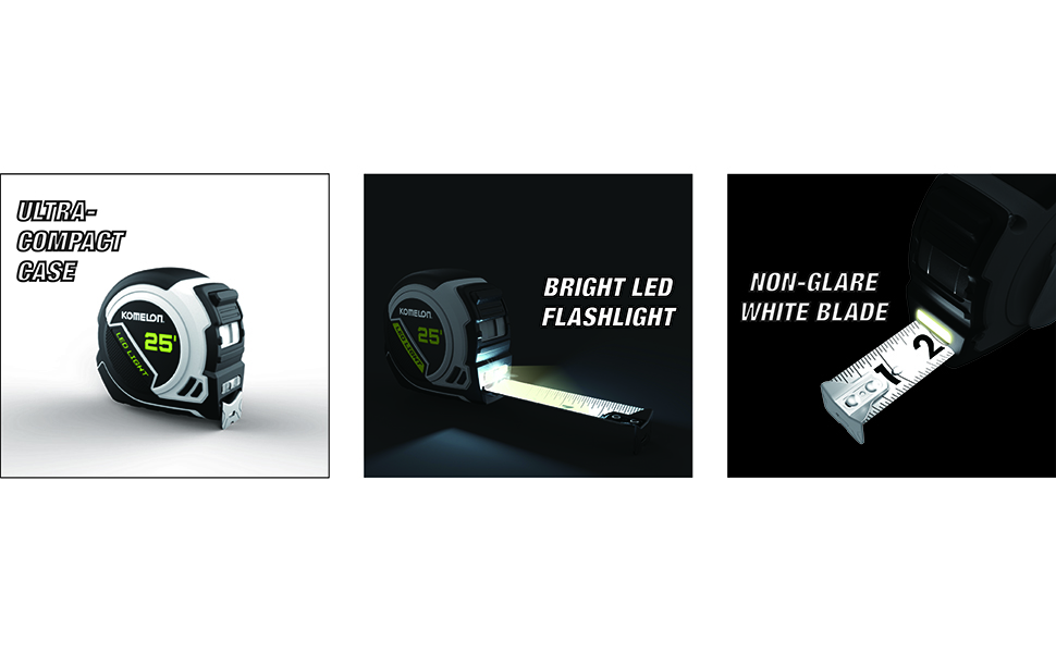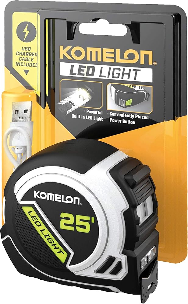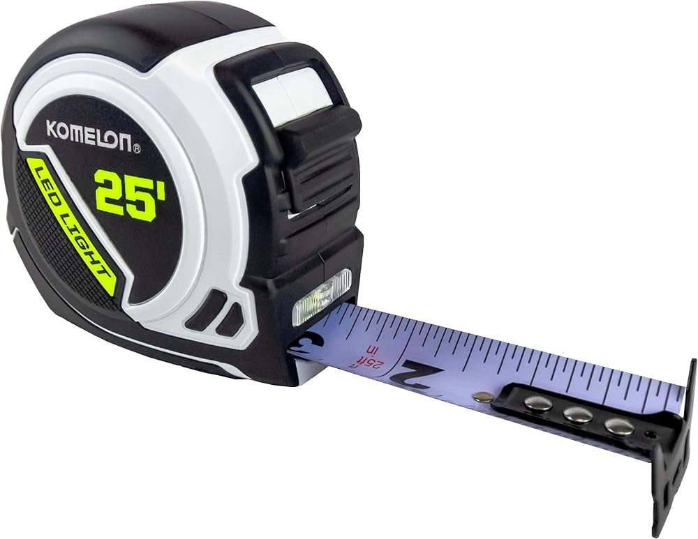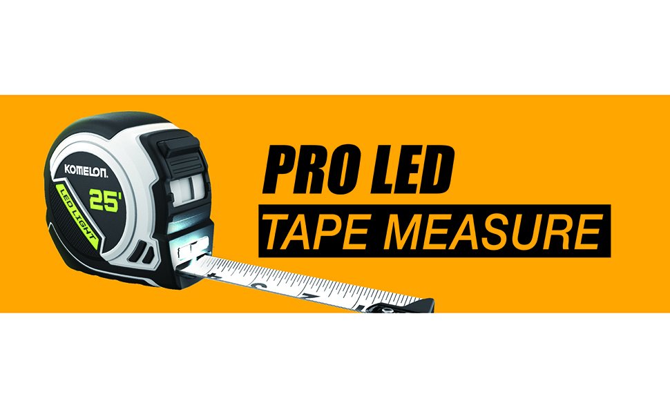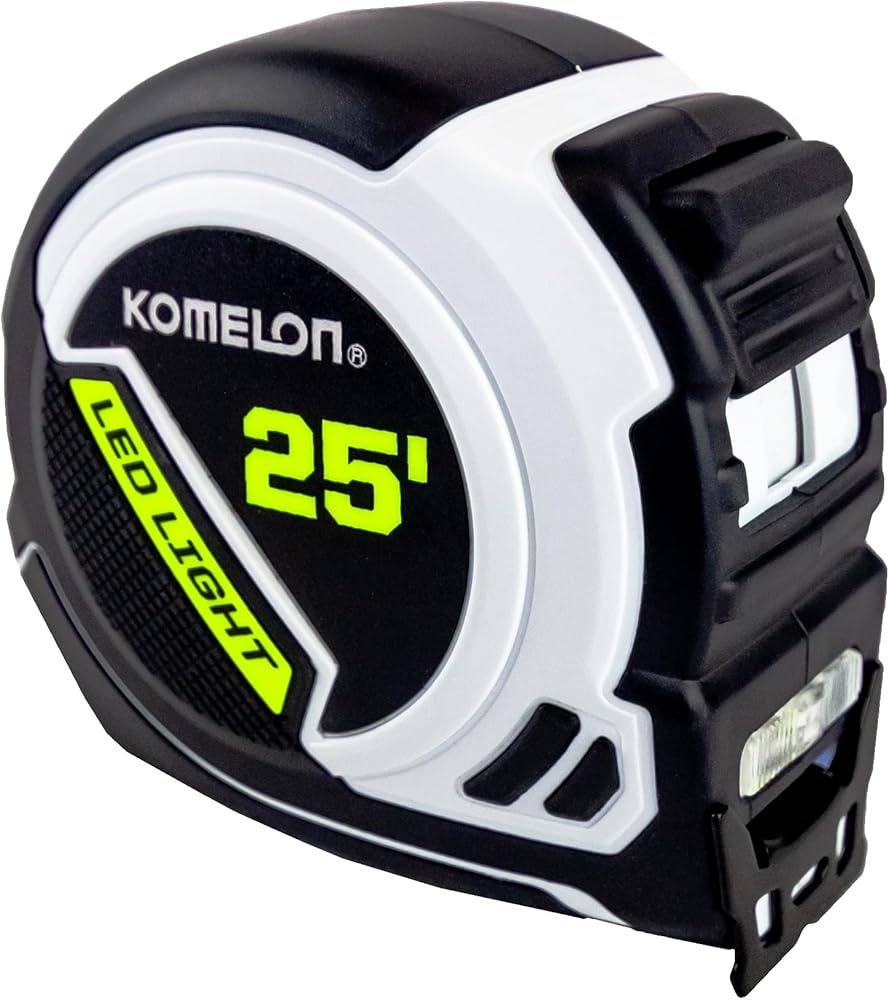 شريط قياس بإضاءة LED من كوميلون، أبيض/أسود - 25 قدم. - 25LED