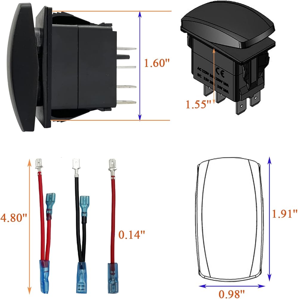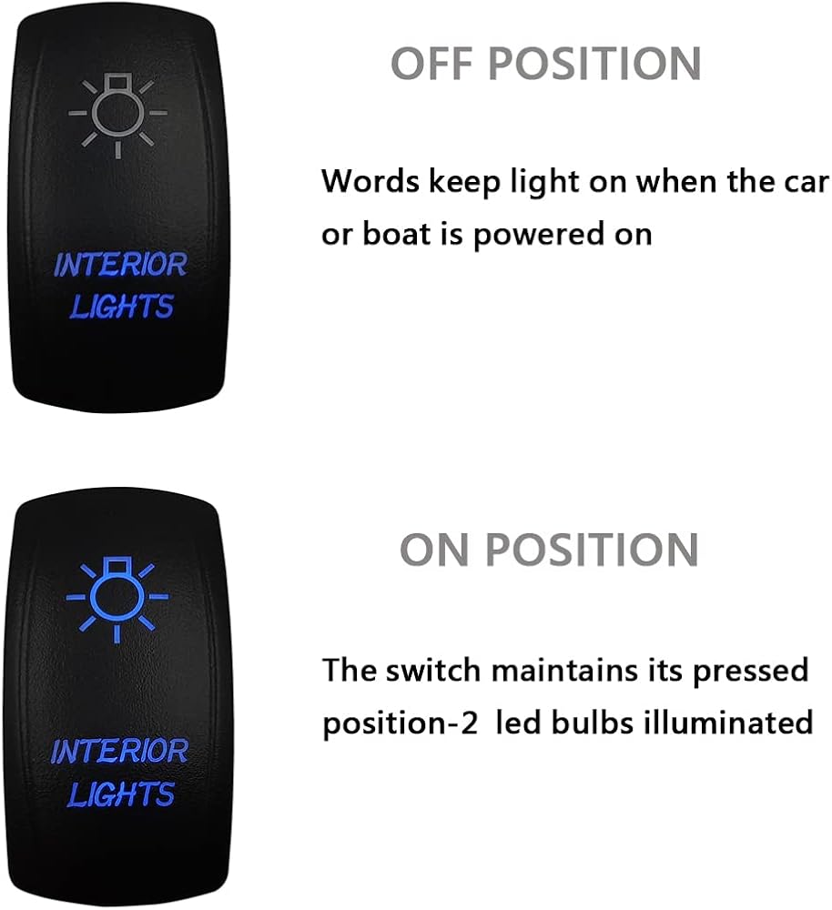 • 5 Pins ON-OFF SPST(single pole single throw) blue led rocker switch,easy installation with the equipped wires.