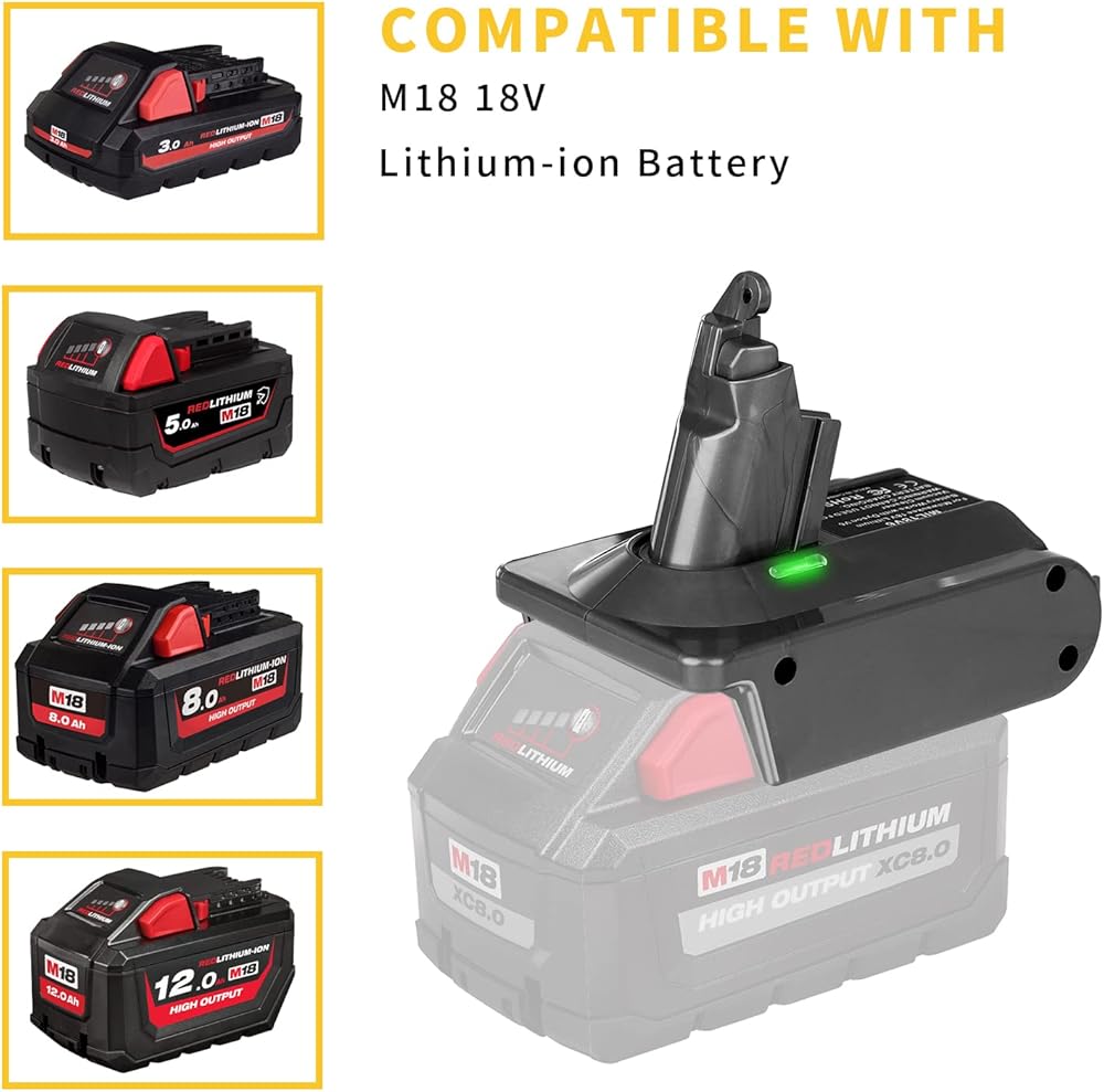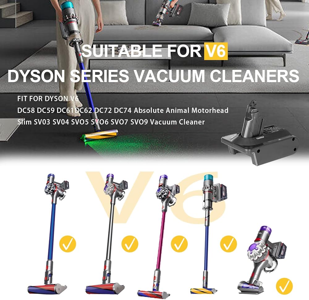 biuonga لـ Dyson V6 محول بطارية بديل لميلووكي 18 فولت M18 تحويل لـ Dyson DC62 DC59 DC58 SV03 SV04 SV09 V6 رأس محرك الحيوان V6 سليم V6 مطلق V6 مكنسة رقيق (محول فقط)