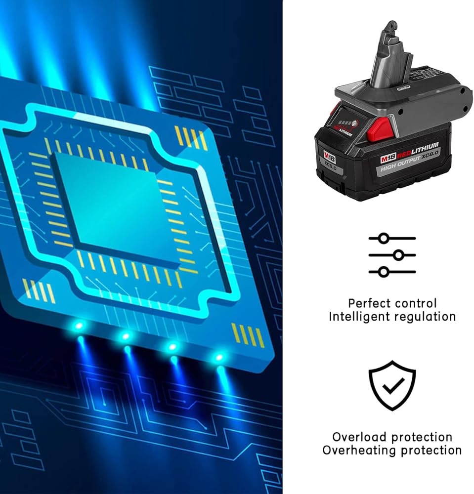 • ميزة محول MIL18 V6: من خلال تحويل بطارية Milwaukee 18V لاستبدال بطارية Dyson V6، يمكنك الاستمرار في استخدام المكنسة الكهربائية V6 الخاصة بك حتى بعد تلف البطارية الأصلية، مما يوفر لك المال ويقلل من النفايات. بشكل عام، يعد محول المحول هذا حلاً مريحًا وفعالاً من حيث التكلفة يسمح لك بالاستمرار في استخدام مكنسة Dyson V6 الكهربائية، حتى بعد تلف البطارية الأصلية. بفضل تصميمه سهل الاستخدام وبنيته عالية الجودة، فمن المؤكد أنه سيكون إضافة قيمة لأي منزل أو مكان عمل.