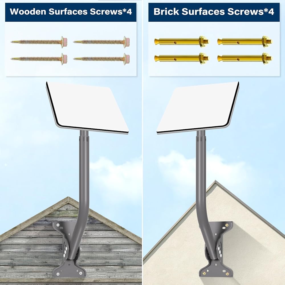 التثبيت المتعدد: تأتي مجموعة التثبيت Starlink هذه مع اثنين من البراغي المختلفة التي تناسب الأسطح المصنوعة من مواد مختلفة، بما في ذلك الخرسانة والخشب والطوب وصفائح الحديد الرقيقة، مما يوفر لك المرونة لاختيار الموقع المثالي لمعدات Starlink الخاصة بك.