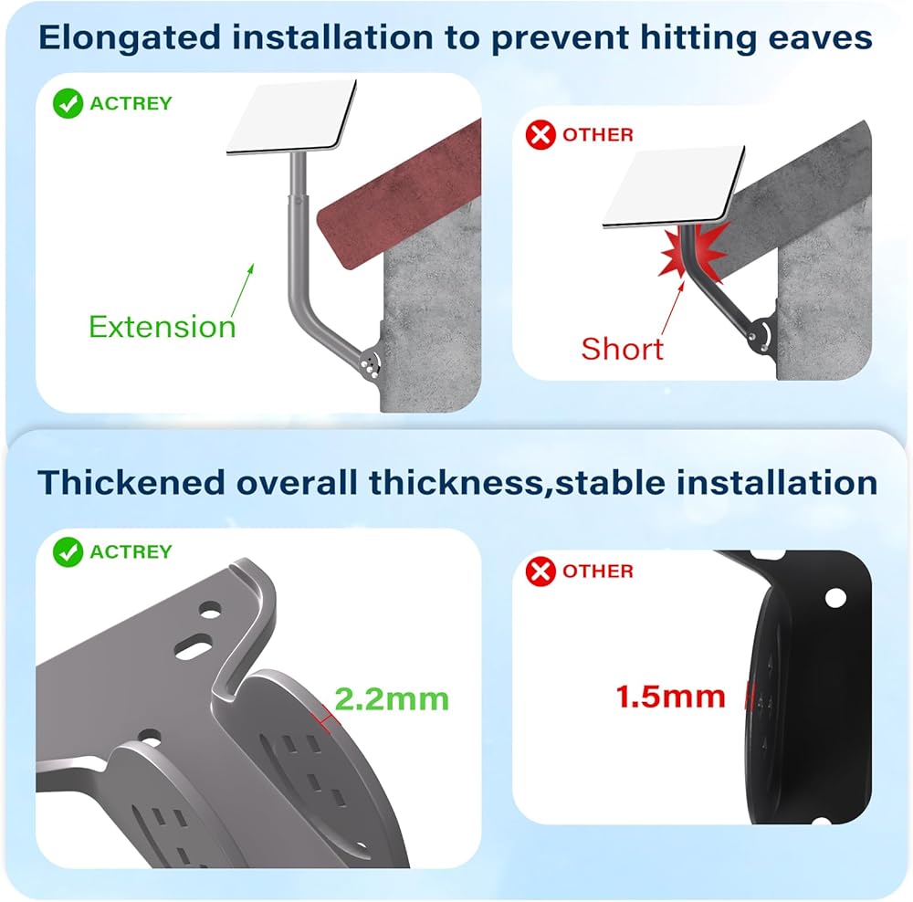 نمط قابل للتعديل: يمكن لحامل السقف Starlink تعديل زاوية التثبيت بحرية وفقًا للوضع الفعلي، ويمكن لمجموعة التثبيت Starlink التكيف مع سيناريوهات الاستخدام المختلفة، مثل الجدران والأسقف ذات المنحدرات المختلفة، من أجل تحديد الموقع الذي تكون فيه أقوى إشارة، وهو الأهم لمستخدمي Starlink.