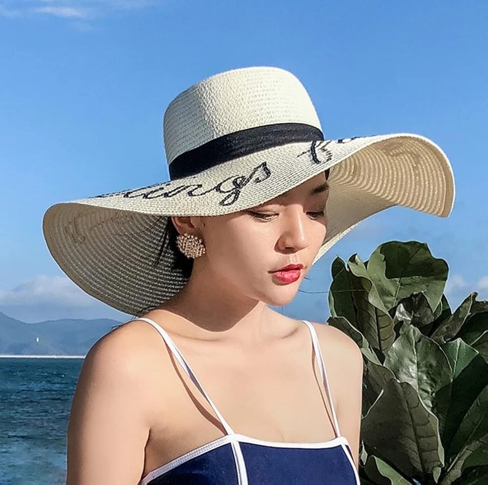 *Domed crown and large wide brim, very suitable to wear on the beach.