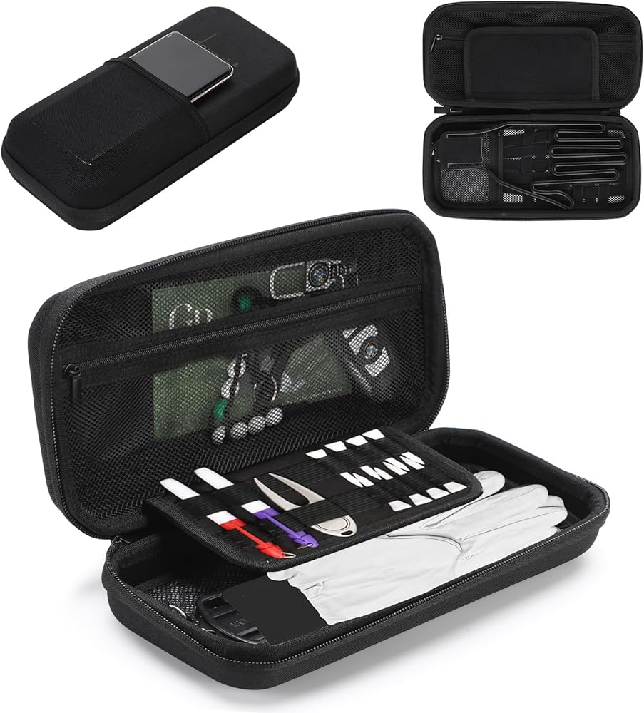 • 【مادة عالية الجودة】حقيبة ملحقات الجولف الخاصة بنا مصنوعة من مادة EVA متينة ومقاومة للتآكل، والتي تتميز بخصائص مقاومة الزلازل والضغط، وتحمي قفازات الجولف والإكسسوارات الأخرى بشكل فعال. تتيح لك حلقة التثبيت المتضمنة ربط حقيبة تخزين الجولف بشكل آمن بحقيبة الظهر أو حقيبة السفر، مما يجعل من السهل عليك حمل ملحقات الجولف الضرورية في أي وقت وفي أي مكان.