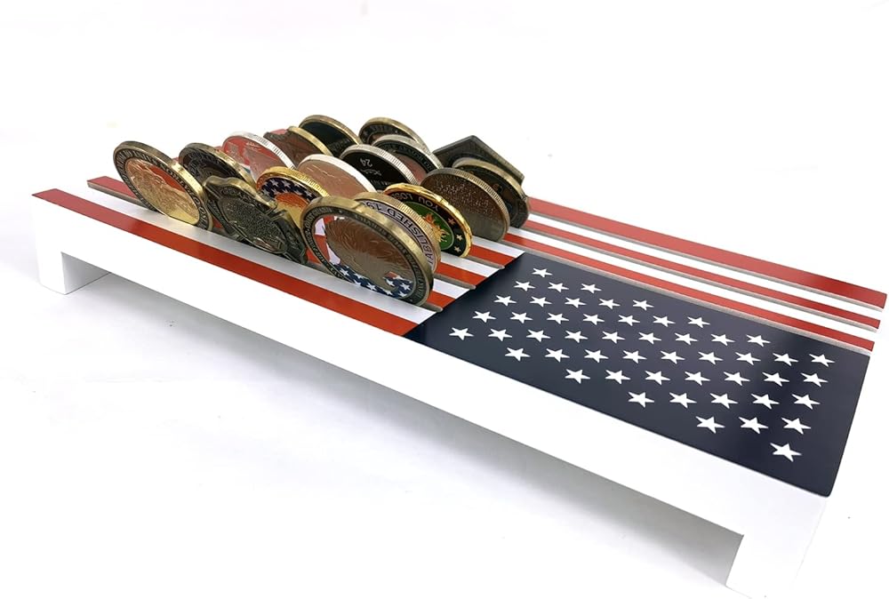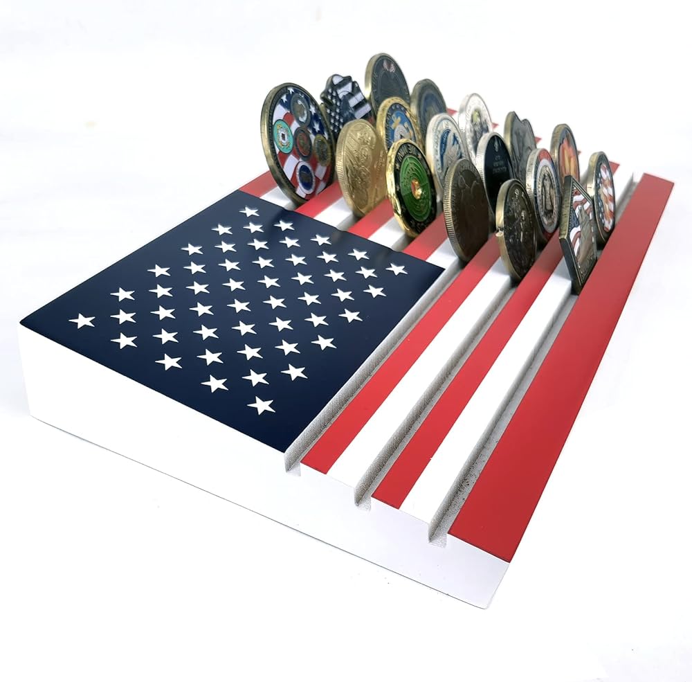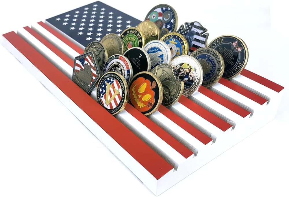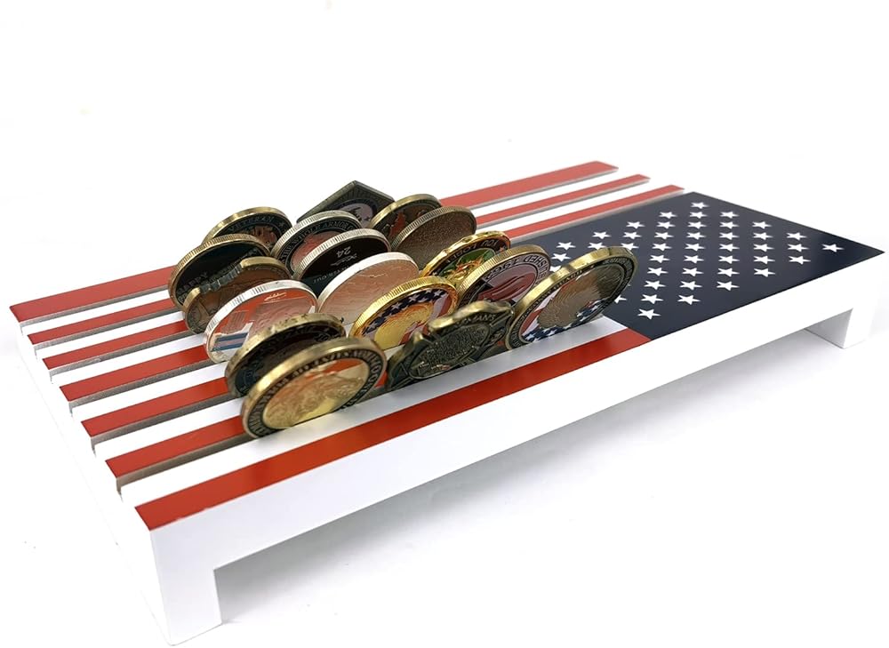 Personalized handcrafted US flag challenge coin display Case.