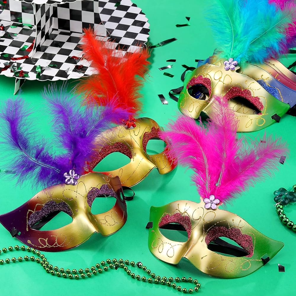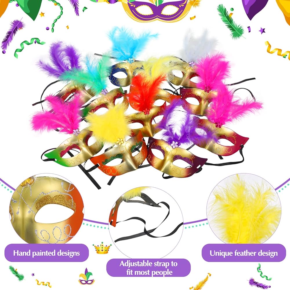 تشكيلة مذهلة: سوف تحصل على 200 قطعة من أقنعة تنكرية من ريش ماردي جراس في عبوة واحدة، بما في ذلك العديد من أنواع الألوان المختلفة، والكمية والألوان الكافية يمكن أن تلبي احتياجاتك للاستخدام اليومي والاستبدال، ويمكنك أيضًا اختيار ما يناسب أنواعك اليومية المختلفة من ملابس