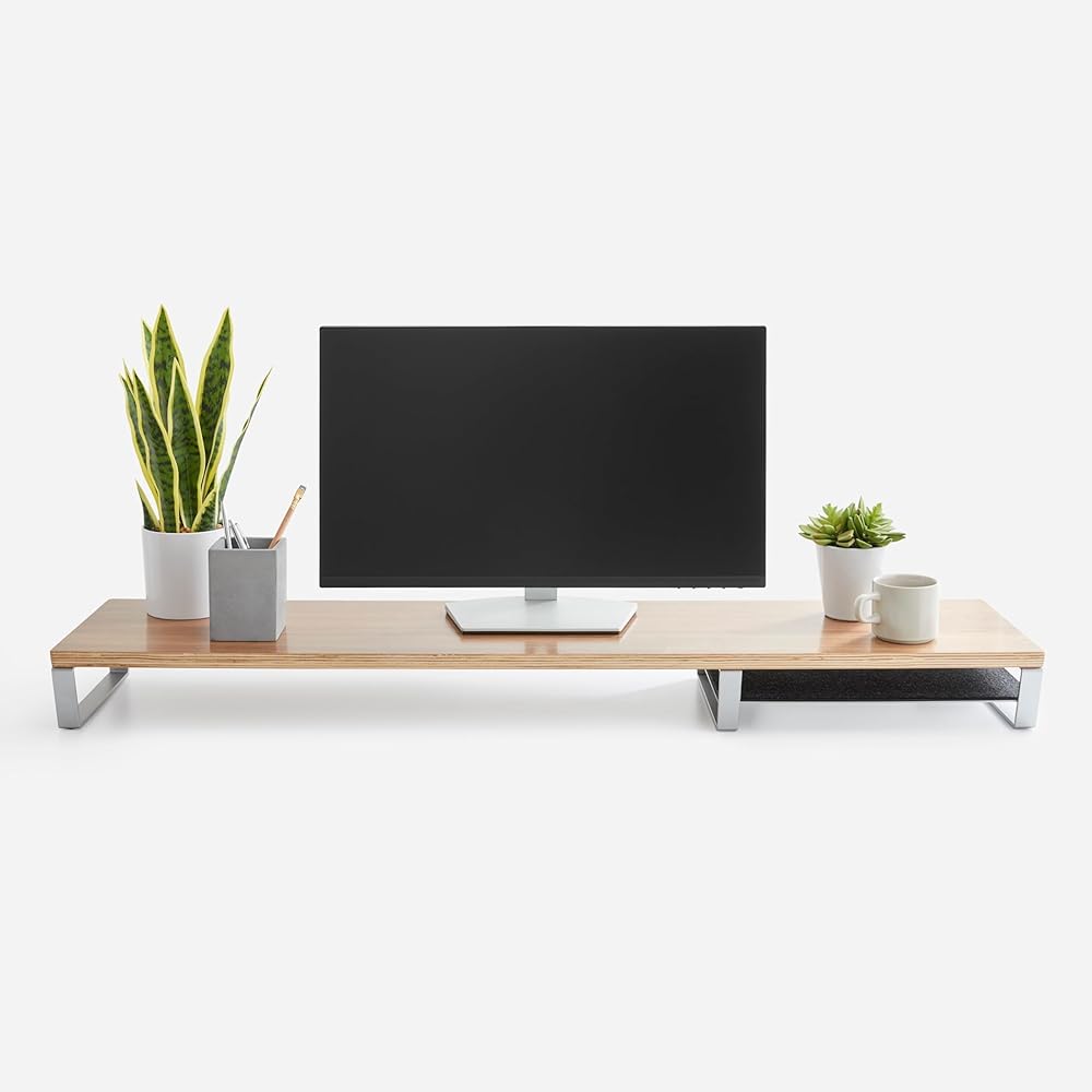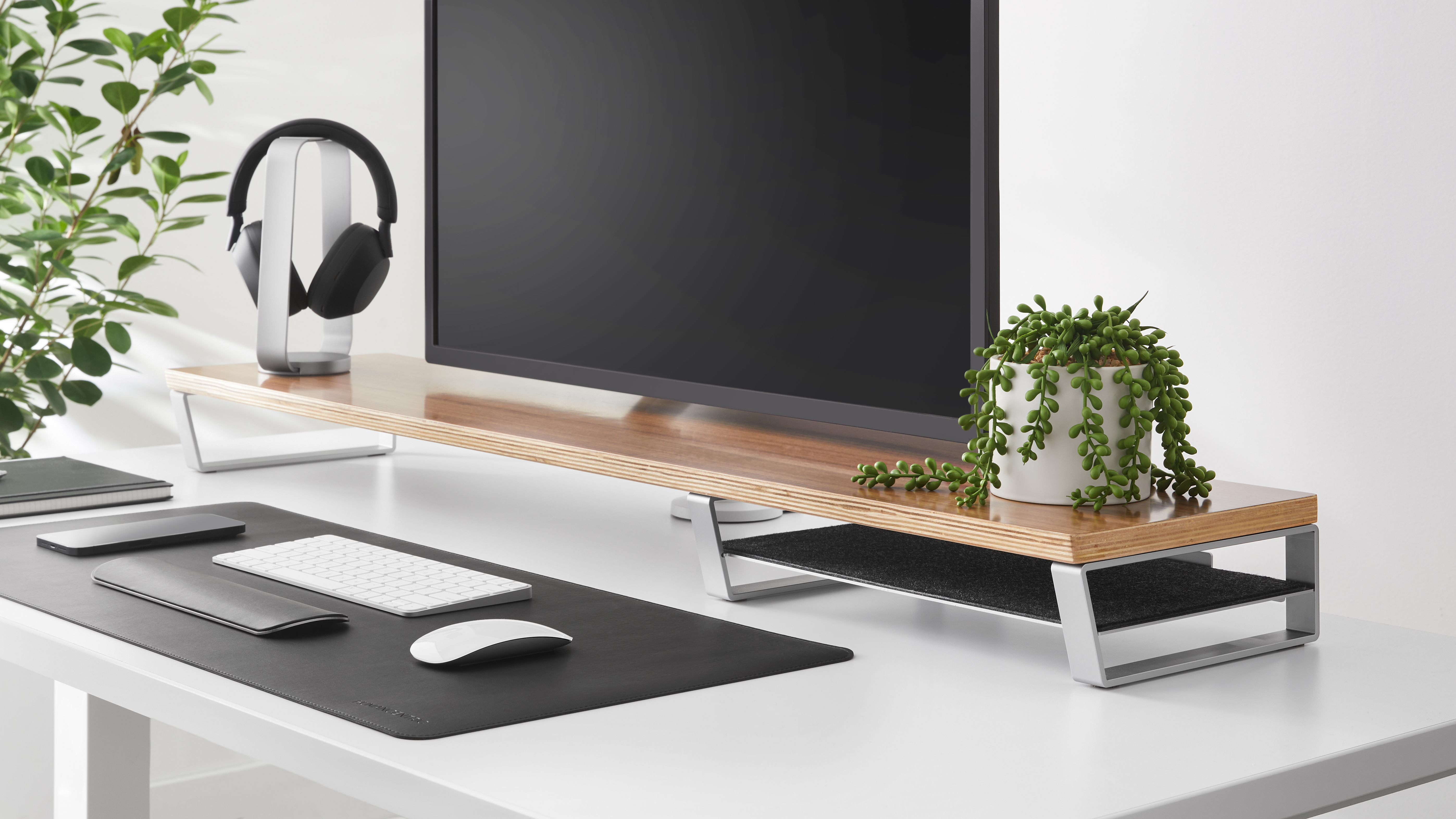• تحسين تنظيم مكتبك وبيئة العمل. ارفع شاشات الكمبيوتر الخاصة بك إلى مستوى العين باستخدام حامل الشاشة لتقليل إجهاد الرقبة. بعرض 48 بوصة، يعمل الرف كحامل شاشة لشاشتين أو شاشة واحدة فائقة الاتساع.