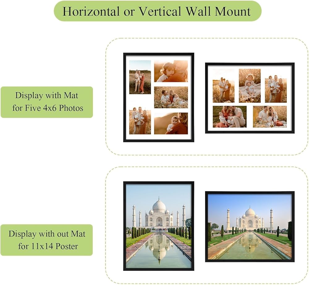 • خلق الدفء: يمكن للصور العائلية ذات الابتسامات أن تجلب الكثير للأشخاص، وستساعدك الإطارات المجمعة الأربعة للصور مقاس 5x7 و7x5