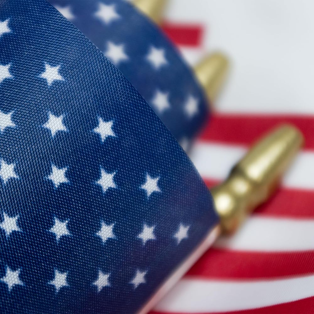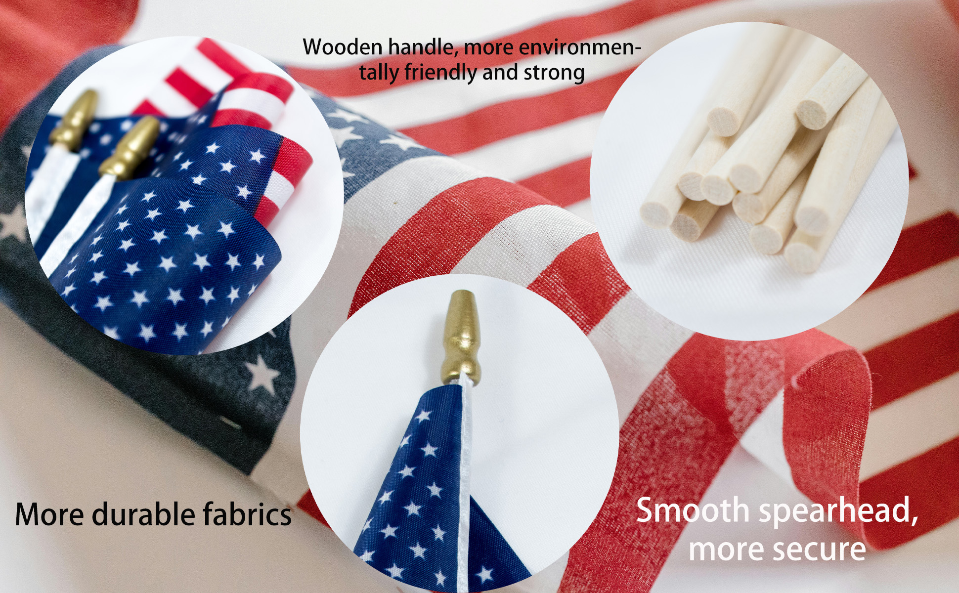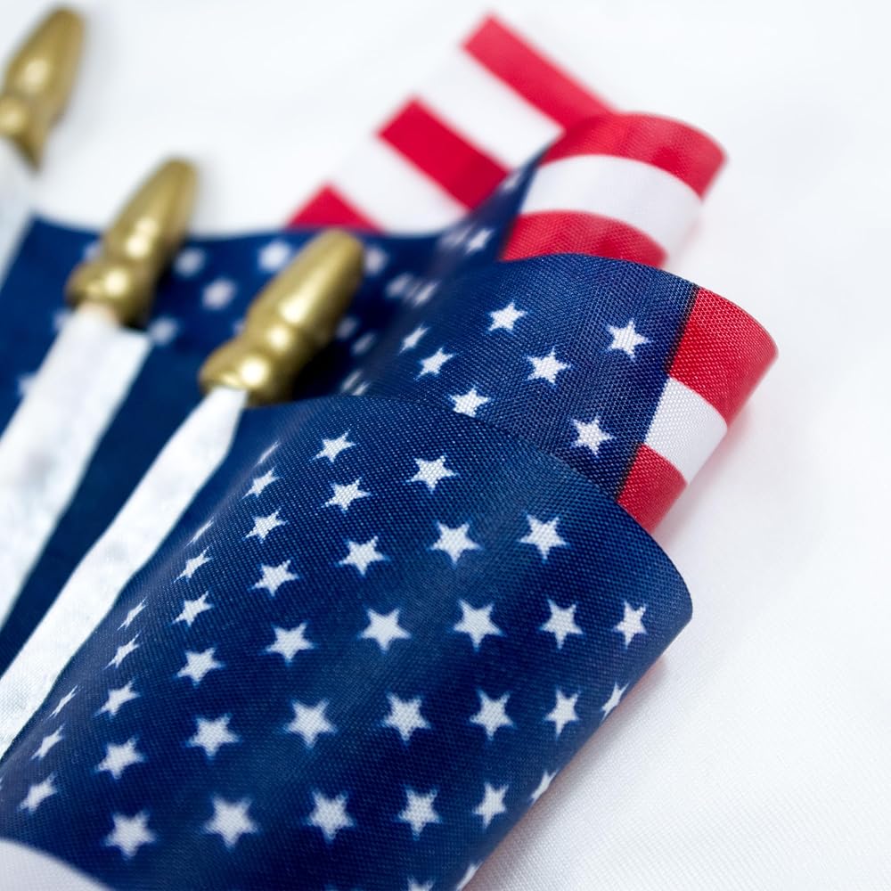 الرمزية الوطنية: أظهر فخرك بالولايات المتحدة الأمريكية مع أعلام الولايات المتحدة الأمريكية الصغيرة النابضة بالحياة والملفتة للنظر. ألوانها الزاهية وتصميمها الكلاسيكي تجعلها مثالية للتلويح أثناء المسيرات، أو تزيين منزلك أو مكتبك، أو كقطع مركزية وطنية للمناسبات الخاصة.