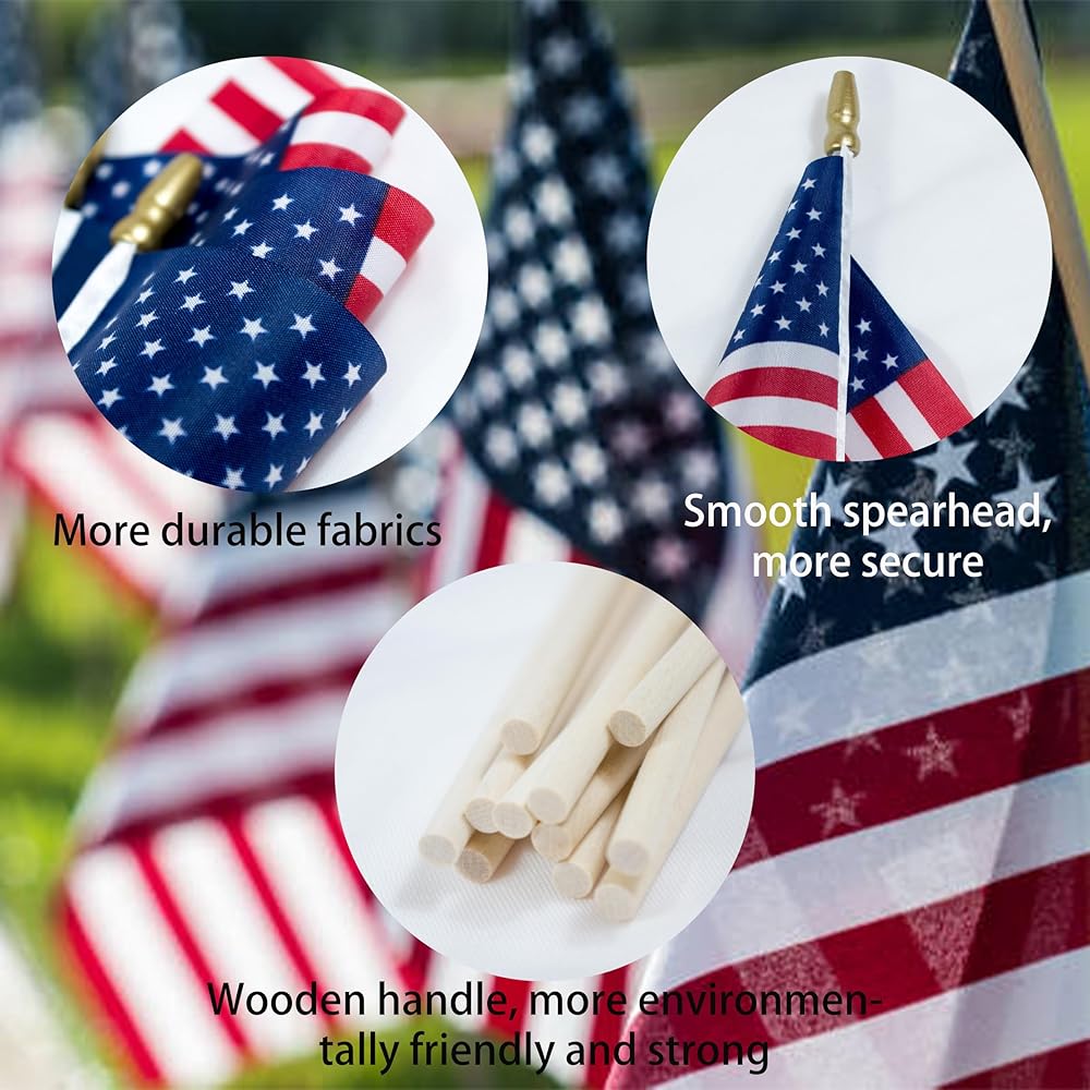 هيكل متين: مصنوعة من البوليستر عالي الجودة، هذه الأعلام الأمريكية الصغيرة مقاومة للطقس ومقاومة للبهتان ومصممة لتحمل الرياح القوية دون تمزق أو تمزق. تضمن العصي الخشبية الصلبة ذات الأسطح البلاستيكية سهولة الإدخال في الأرض أو الأواني أو الكعك أو الباقات أو أي منطقة عرض أخرى.