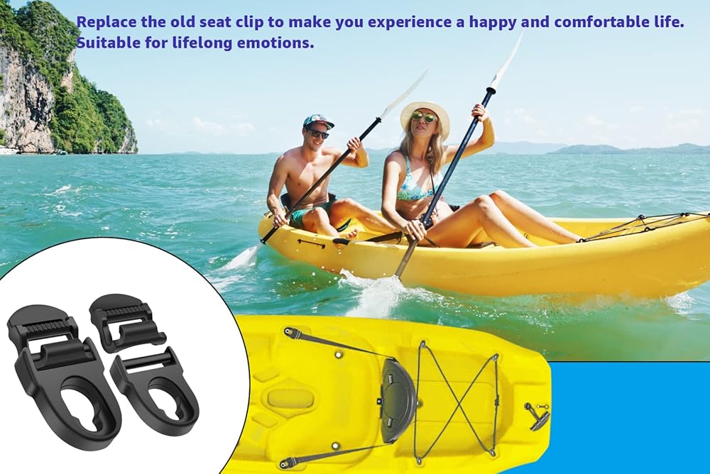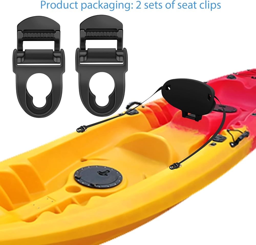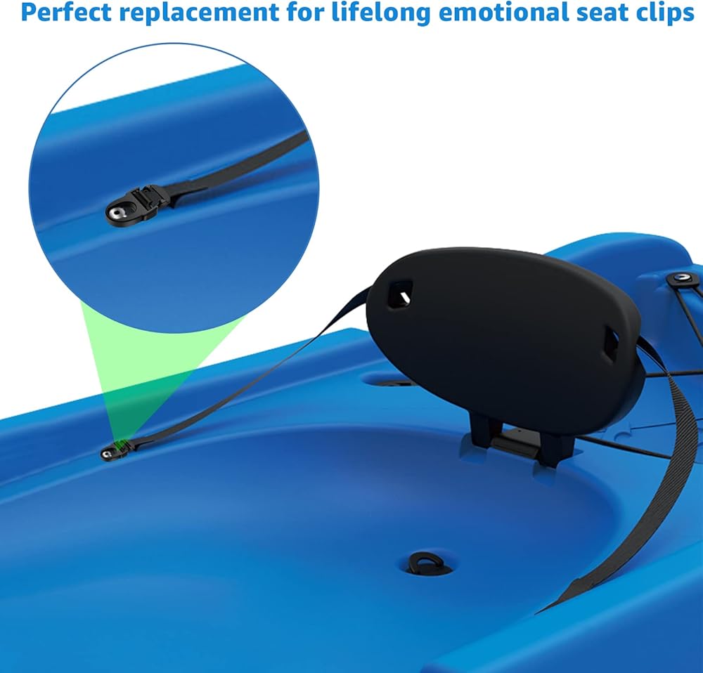 طقم إصلاح مقعد الكاياك - مشبك حزام وخطاف. مناسبة لحزمة المشاعر مدى الحياة (مجموعتان باللون الأسود)