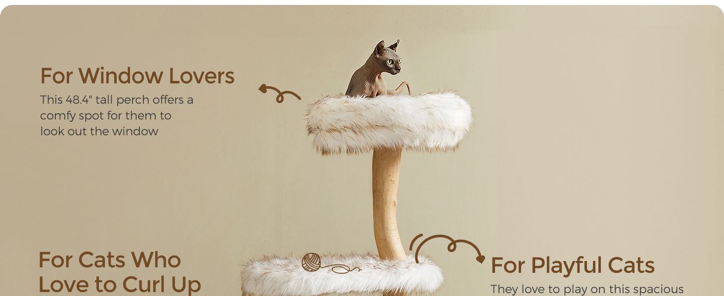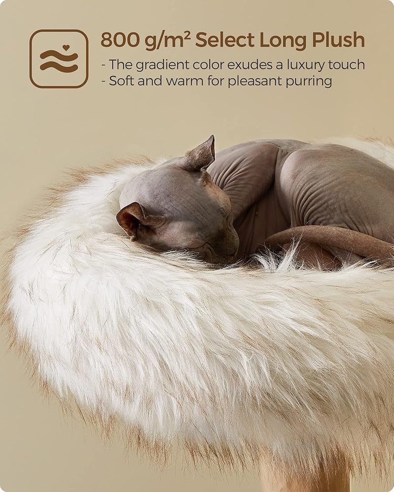 [قطيفة طويلة، دافئة ومريحة] القطط تحب الأماكن الدافئة. ولهذا السبب فإن شجرة القطط الفاخرة هذه مغطاة بقطيفة طويلة 800 جم/م2، وهي ناعمة ودافئة وناعمة ومريحة. سوف تسترخي قططك بالدفء والراحة أينما أقامت على هذه الشجرة