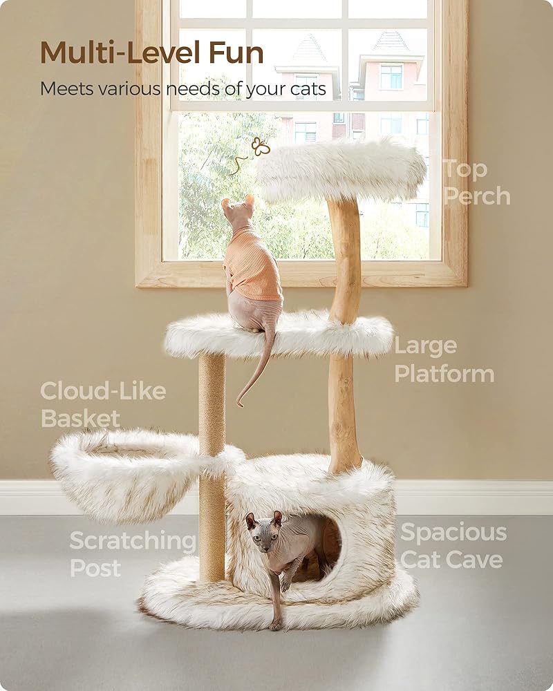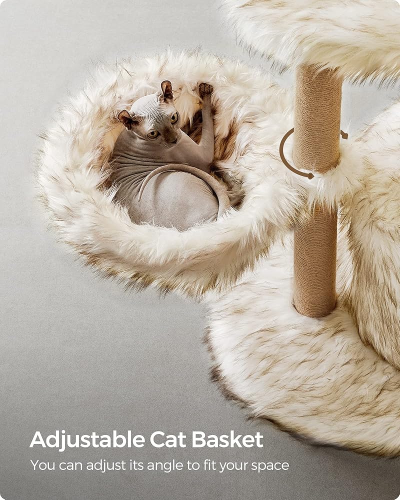 [تسلق. يراقب. يستريح. يخدش. الكل في واحد] تتميز شجرة القطط بتصميم متعدد المستويات لسهولة التسلق، ومجثم علوي للنظر من النافذة، وسلة قابلة للتعديل وكهف واسع للقيلولة المريحة، وعمود خدش مقاس 27.6 سم لإبقاء المخالب سعيدة.