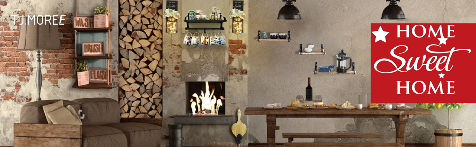 أرفف متعددة الوظائف: مصنوعة من خشب بولونيا الصلب خفيف الوزن مع تشطيب مشعل وأقواس معدنية سوداء. تتضمن شريطًا خشبيًا و8 خطافات قابلة للإزالة؛ مناسبة للمطبخ والحمام وزاوية القهوة. كما أنه مثالي كديكور حائط ريفي لبيت المزرعة.