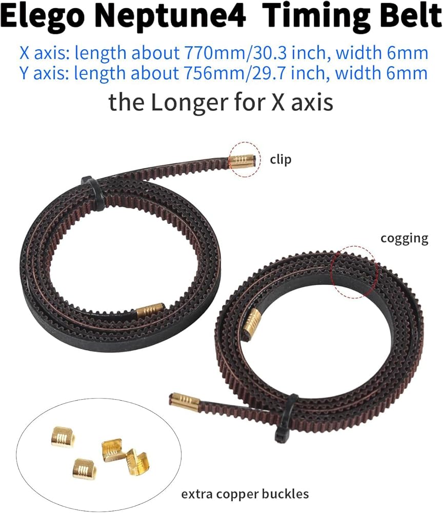 Package Details: 1 pc X timing belt + 1 pc Y timing belt, come with spare copper buckles, especially designed for Elego Neptune4 3D Printer.