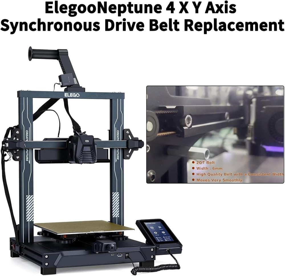 Product Name: Elego Neptune4 Original Timing Belt Upgrades X Y Axis Synchorous Belt Replacement, 2GT-6mm Anti-slip version, Stable Transmission, High precision and anti-wear Only compatible with Neptune4 3D Printer Motion Part. X axis belt a bit short for Neptune4 Pro, Y axis fits perfect