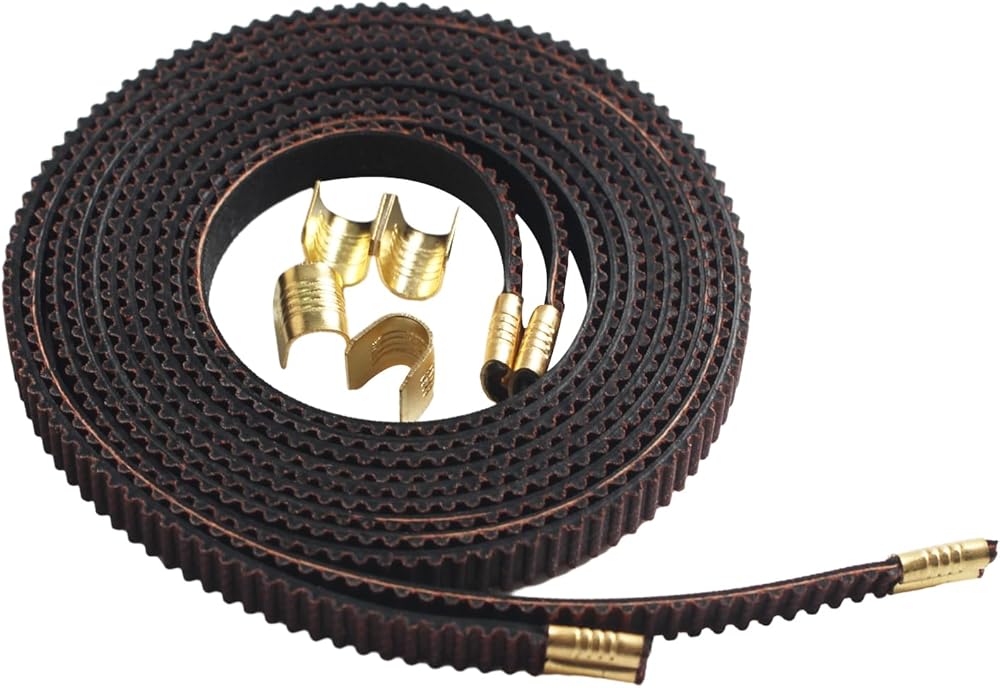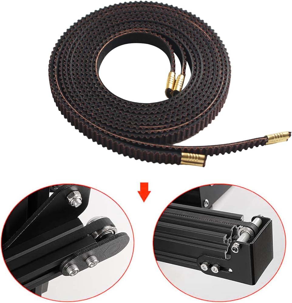 5.Package Include: 2pcs X Y synchronous timing belt pre-applied with with copper sleeves on both ends, come with extra 4pcs crimping copper connectors. Due to fine differences on the whole machine assembly, if belt is a bit loose or short, please remove the copper fitting and reclamp a little farther out/inside in order to get it to work.