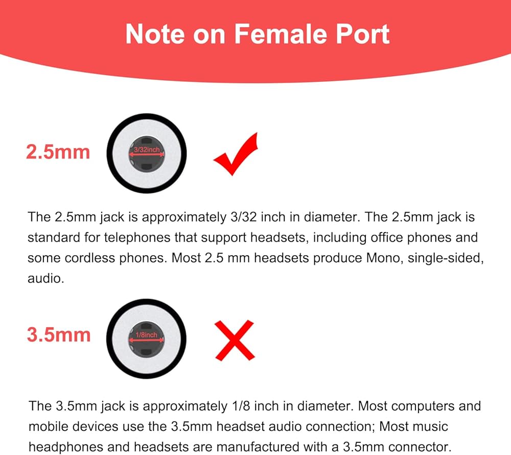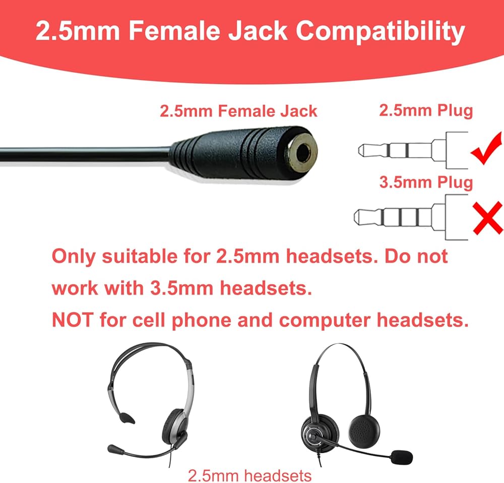 【توافق مع مقبس أنثى 2.5 مم: محول سماعة الرأس 2.5 مم أنثى إلى RJ9 ذكر مناسب فقط لسماعات الرأس 2.5 مم. لا تعمل مع سماعات 3.5 ملم. (ليس للهاتف الخليوي وسماعات الكمبيوتر)