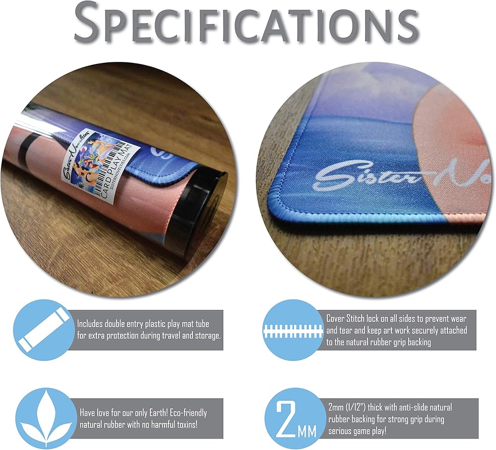 • 😎 COVER LOCK STITCH - Our unique anime playmat uses cover lock stitching on all sides, artwork wont peel! High resolution printing on classic-sized thick rubber MTG play mat at 1/12" thickness! This MTG playmat will last many TCG adventures!