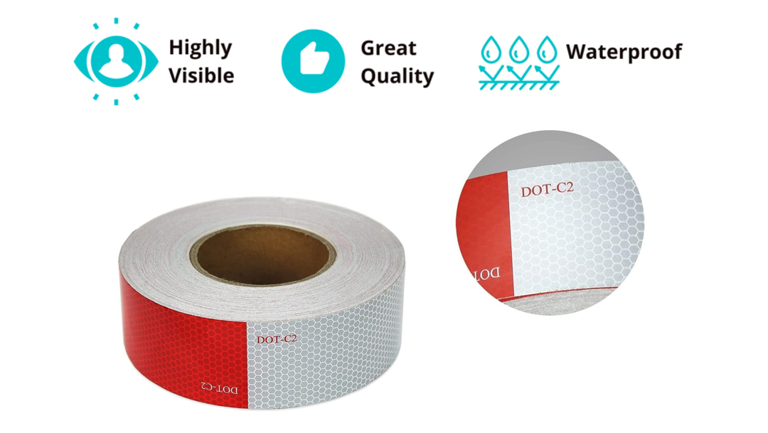【رؤية ممتازة】- يتميز الشريط العاكس باللونين الأحمر والأبيض DOT-C2 بنمط ماسي واضح للغاية على السطح، ويحافظ على انعكاس ممتاز من جميع الزوايا. يوفر رؤية إضافية مطلوبة على الطرق المظلمة.