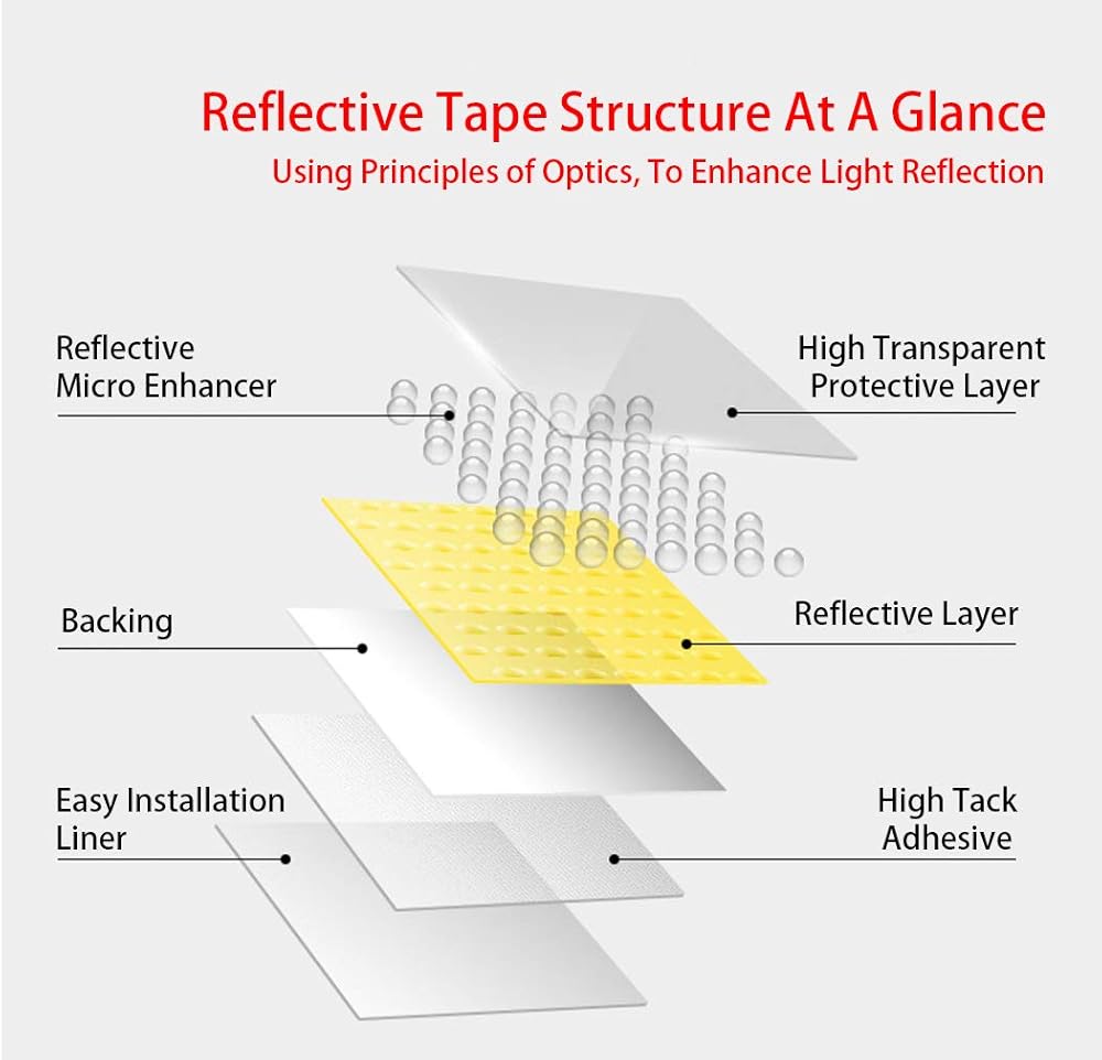 【سهل الاستخدام】- يأتي الشريط العاكس مع بطانة تحرير سهلة الاستخدام، مما يجعل التثبيت سهلاً.