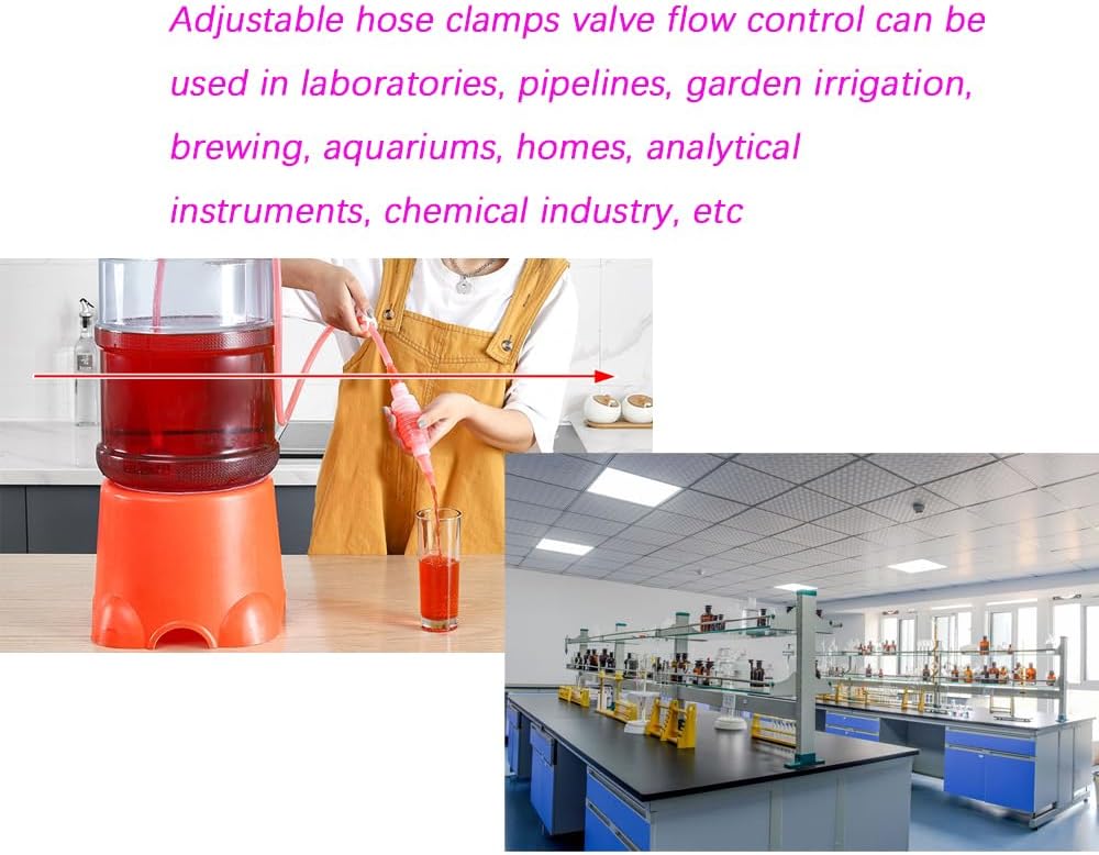 APPLICATION: Adjustable hose clamps valve flow control can be used in laboratories, pipelines, garden irrigation, brewing, aquariums, homes, analytical instruments, chemical industry, etc