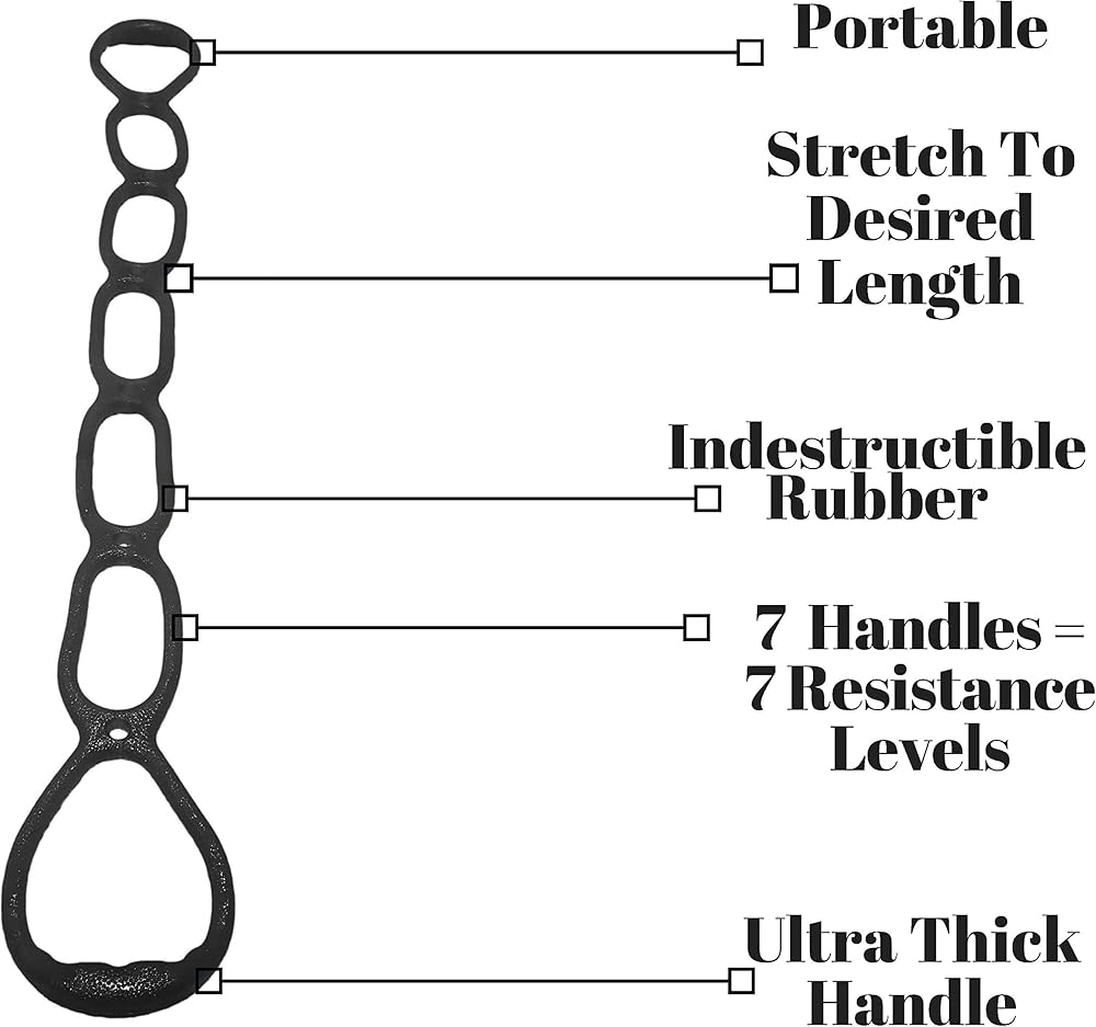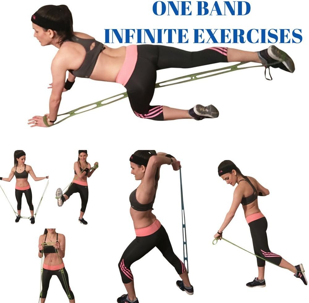 FULL BODY EXERCISE BAND: Stretches, tones, and conditions your entire body. Infinite workouts! Targets your arms, hands, shoulders, neck, stomach, legs, feet, and joints. Portable and easy to use. Simply bring it with you anywhere!