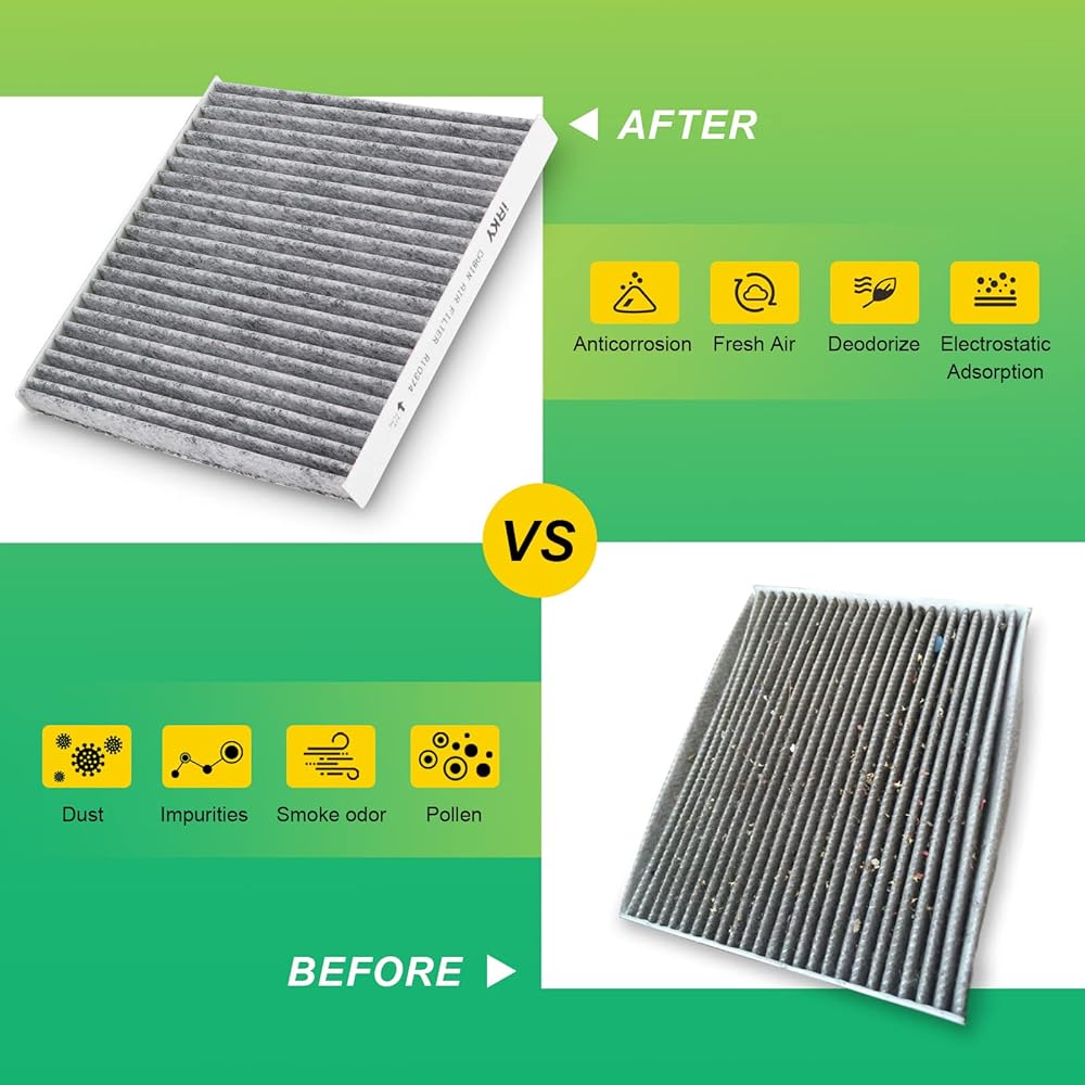 مادة صحية: مصنوعة من الكربون المنشط عالي الجودة بدون محايدة الرائحة الكيميائية. توفر لك مرشحات المقصورة هواء نظيف حقًا للحفاظ على أنفاسك بصحة جيدة.