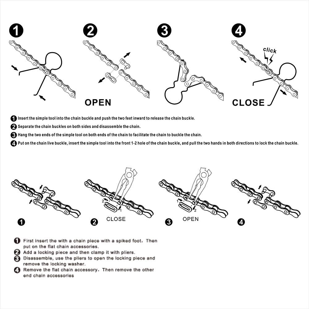 • سهلة الاستخدام: يمكن تكرار موصلات سلسلة الدراجة هذه للاستخدام، وسهلة التجميع والتفكيك؛ مناسبة للدراجات الجبلية ودراجات الطريق