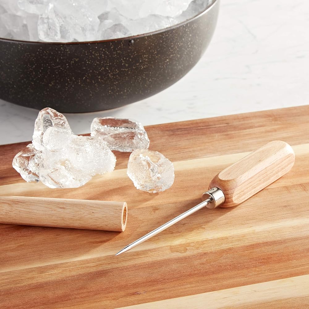 • Squared wooden handle is easy to grip and won't roll away when not in use; using an ice pick adds flare to chilling and serving beverages