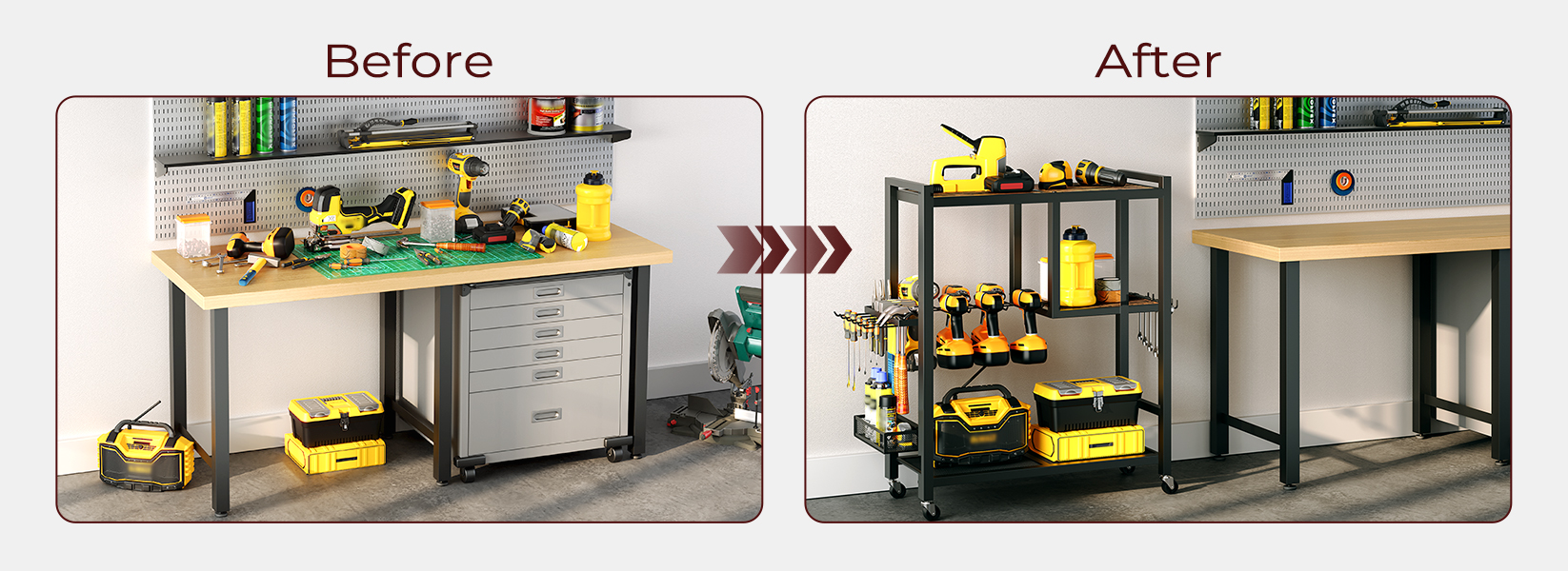 مواد رائعة: مصنوعة من مواد مختارة، تم تصميم منظمة تخزين المرآب هذه لتدوم وتسمح بتنظيم سهل لـ 6-8 مثقاب، ومفكات براغي، ومفاتيح ربط، ومفاتيح، ومطارق، ومثاقب، ومحطات شحن، وأكثر من ذلك، لتلبية احتياجات التخزين المتنوعة الخاصة بك
