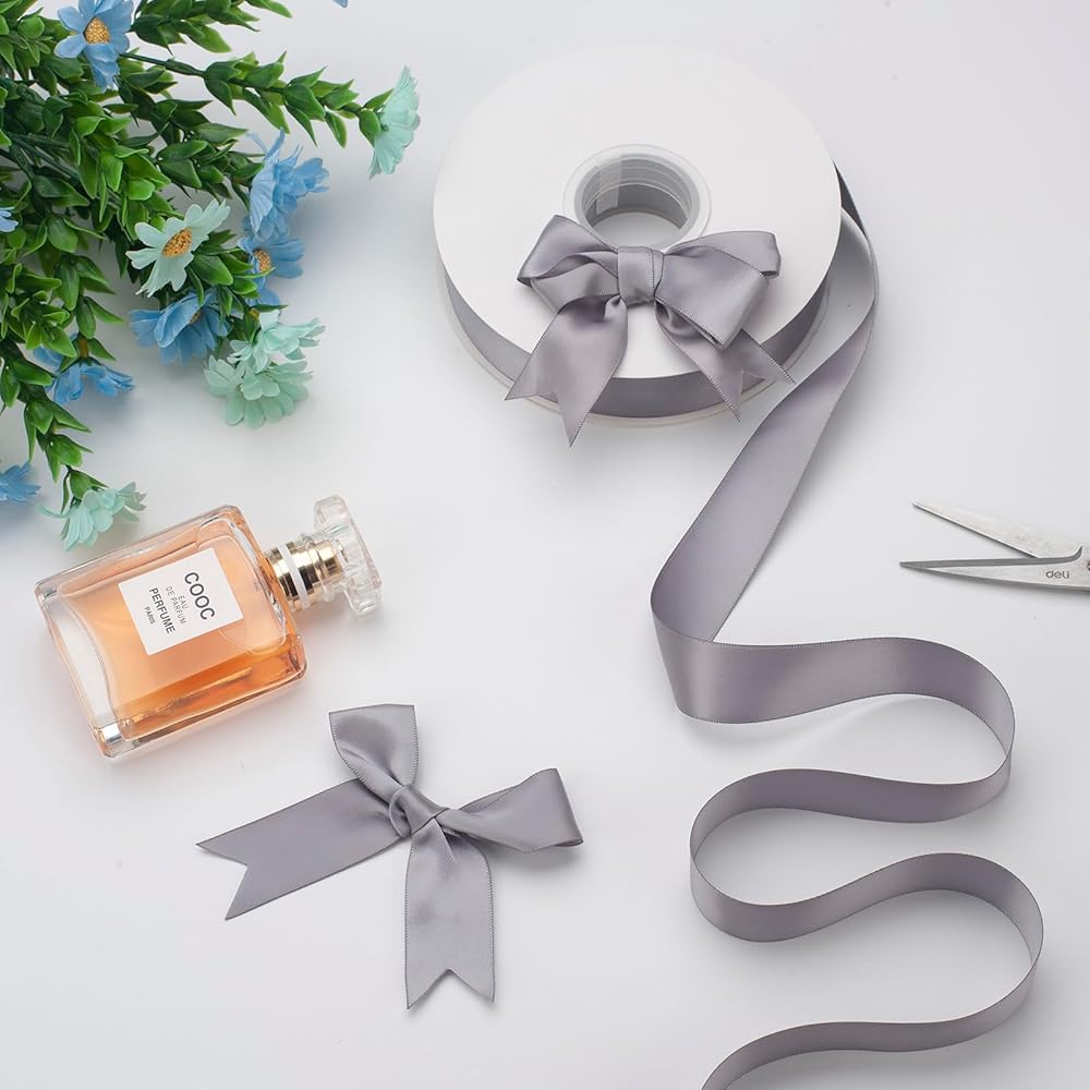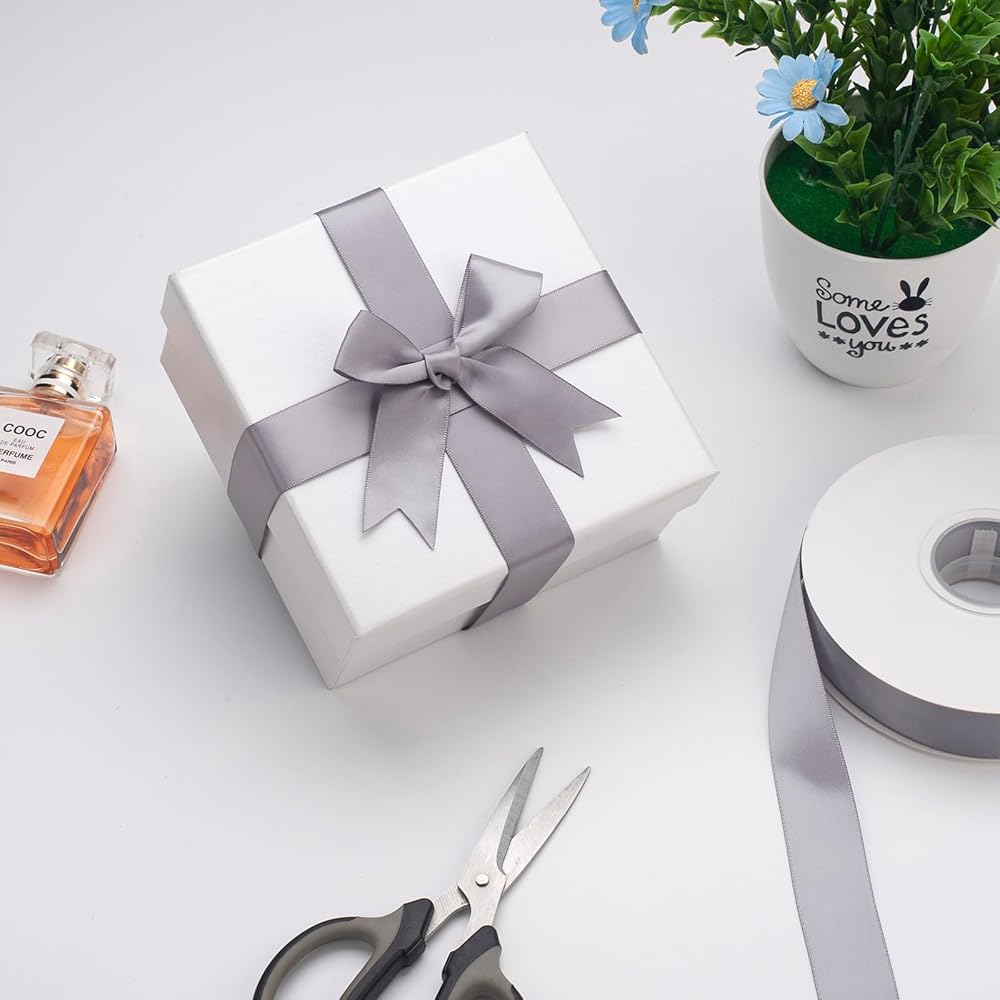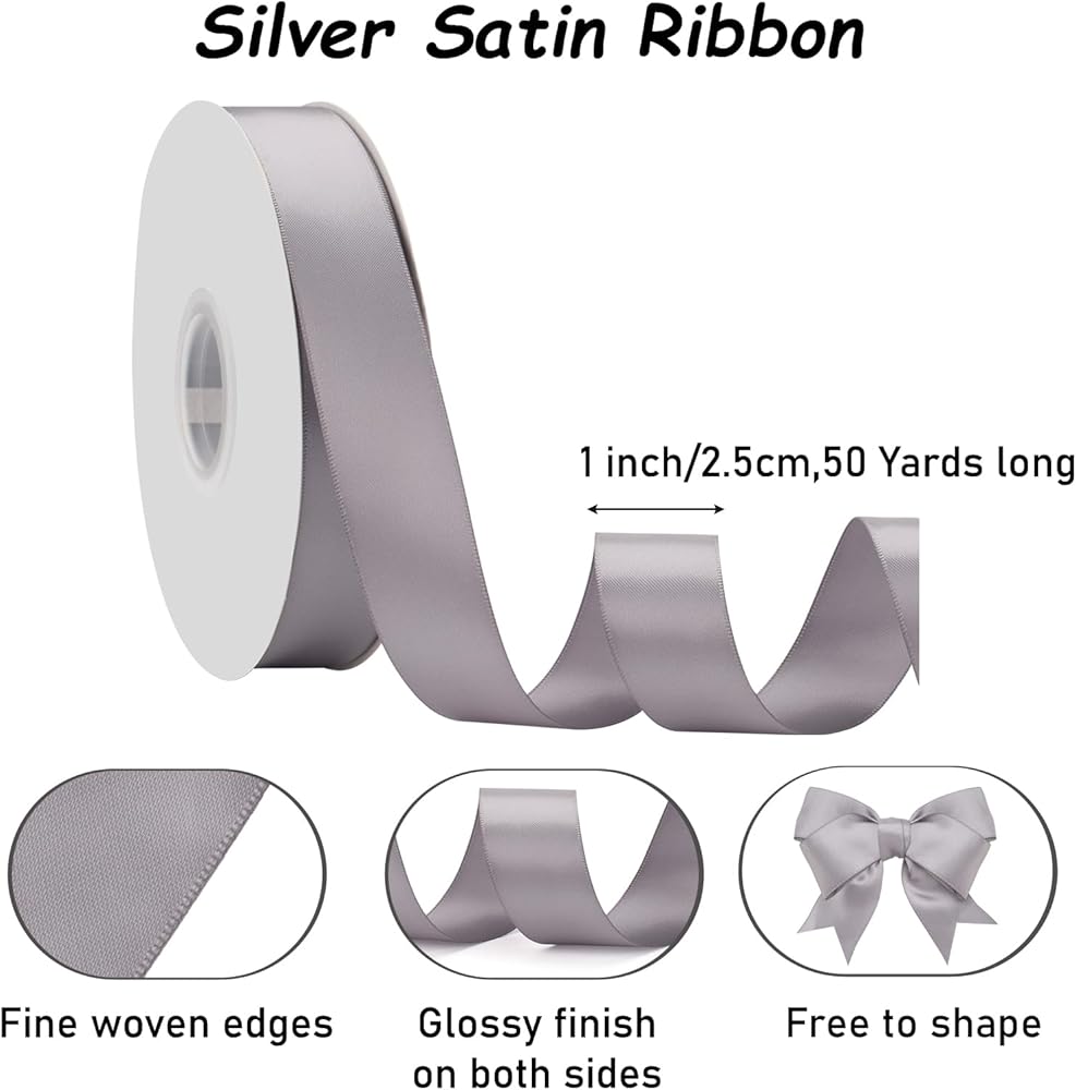 شريط تغليف هدايا رائع----شريط الساتان الفضي الصلب مثالي لسلال الهدايا أو الحقائب أو الصناديق في عيد الميلاد أو عيد الشكر أو الزفاف أو الهالوين أو عيد الحب أو عيد الميلاد أو الذكرى السنوية أو أي عطلة خاصة أخرى، مما يجعل هداياك أكثر تميزًا ورائع.
