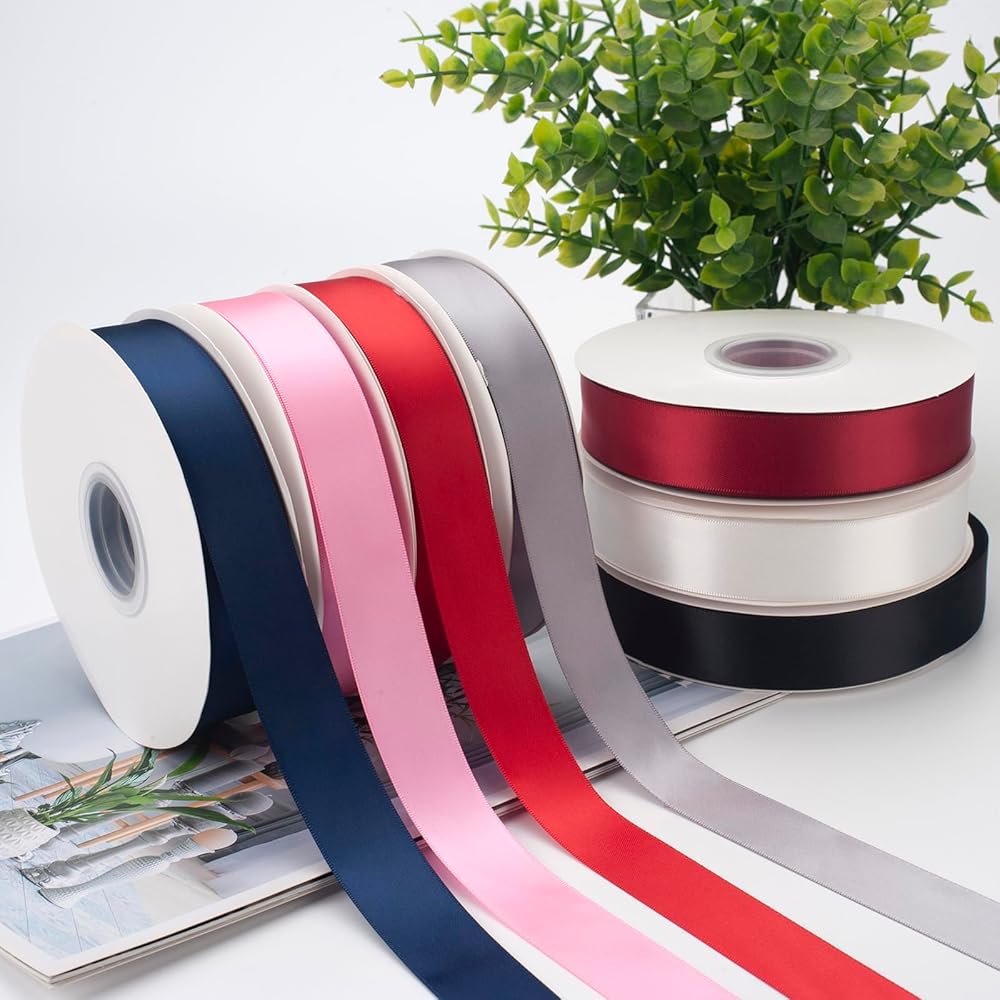 شريط ساتان مزدوج الجوانب----مصنوع من البوليستر بنسبة 100% مع نسيج سميك ومتين، وسطح ناعم وحريري، وملمس رائع، وحواف مخيطة بأناقة، وهو مرن، ويمكن غسله في الغسالة، ولا يبهت ويدوم طويلاً. يتمتع كلا الجانبين بنفس درجة اللمعان لمزيد من التطبيق.