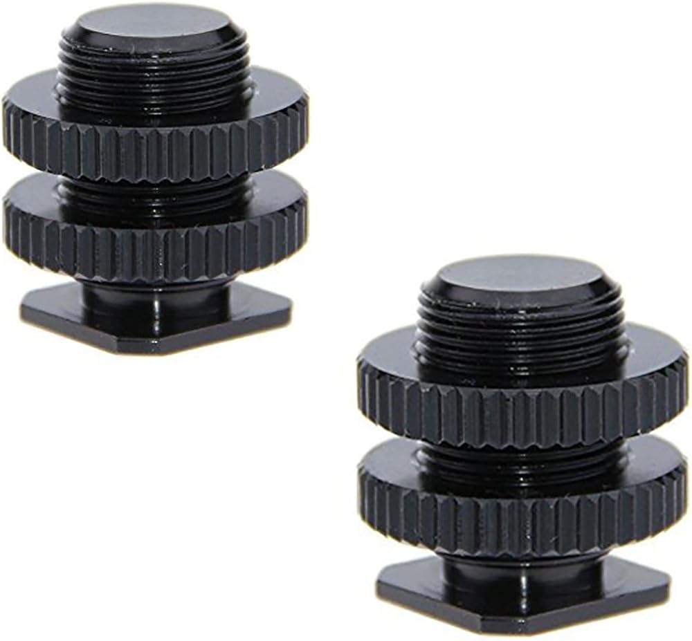 • UNIVERSAL - Aluminum 5/8 Cold Shoe to Hot Shoe (2 pcs) for attaching Mic accessories or other items with 5/8 threading. This part has 1/4"-20 threads on bottom.