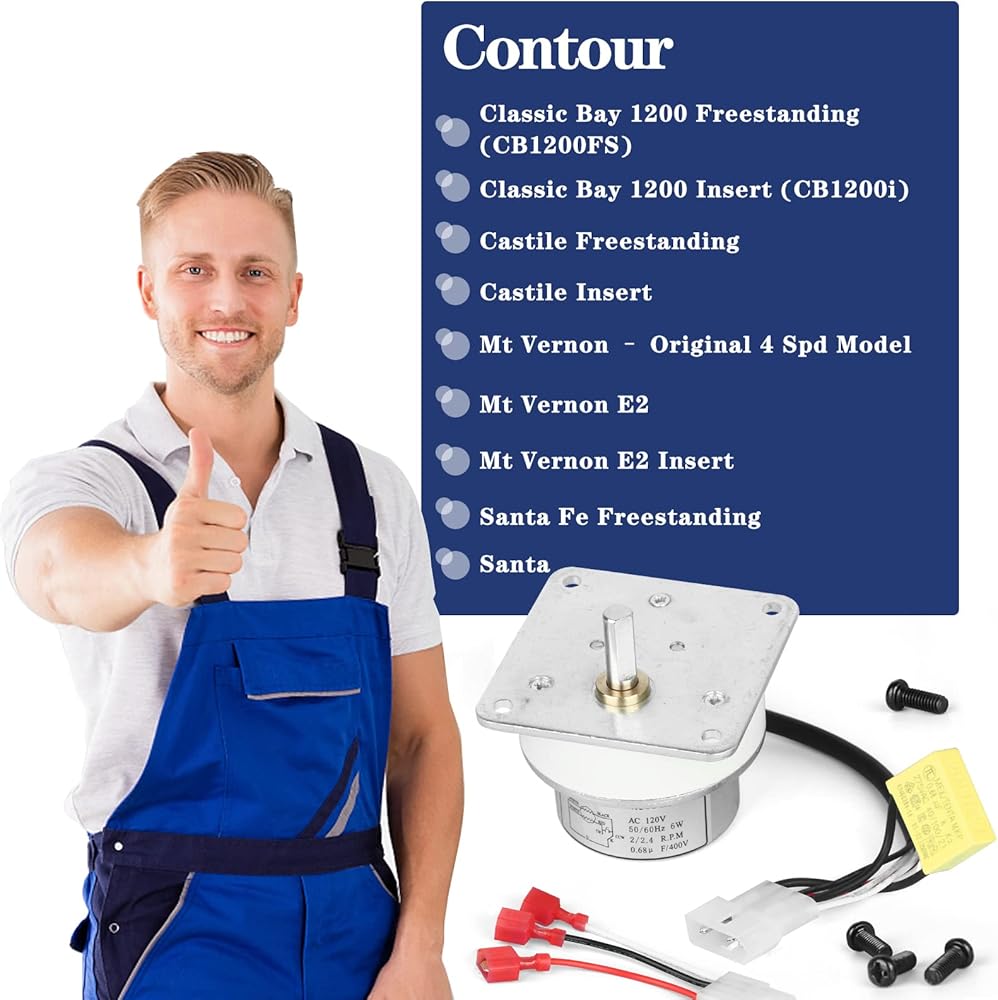 محرك تغذية جديد لـ Quadra-Fire 812-4421، 812-4420 متوافق مع Heatilator CAB50 PS35 PS50 7000-500 Classic Bay 1200 Insert (CB1200i) PH 50/60 هرتز 6 وات 2/2.4 دورة في الدقيقة 120 فولت محرك بديل