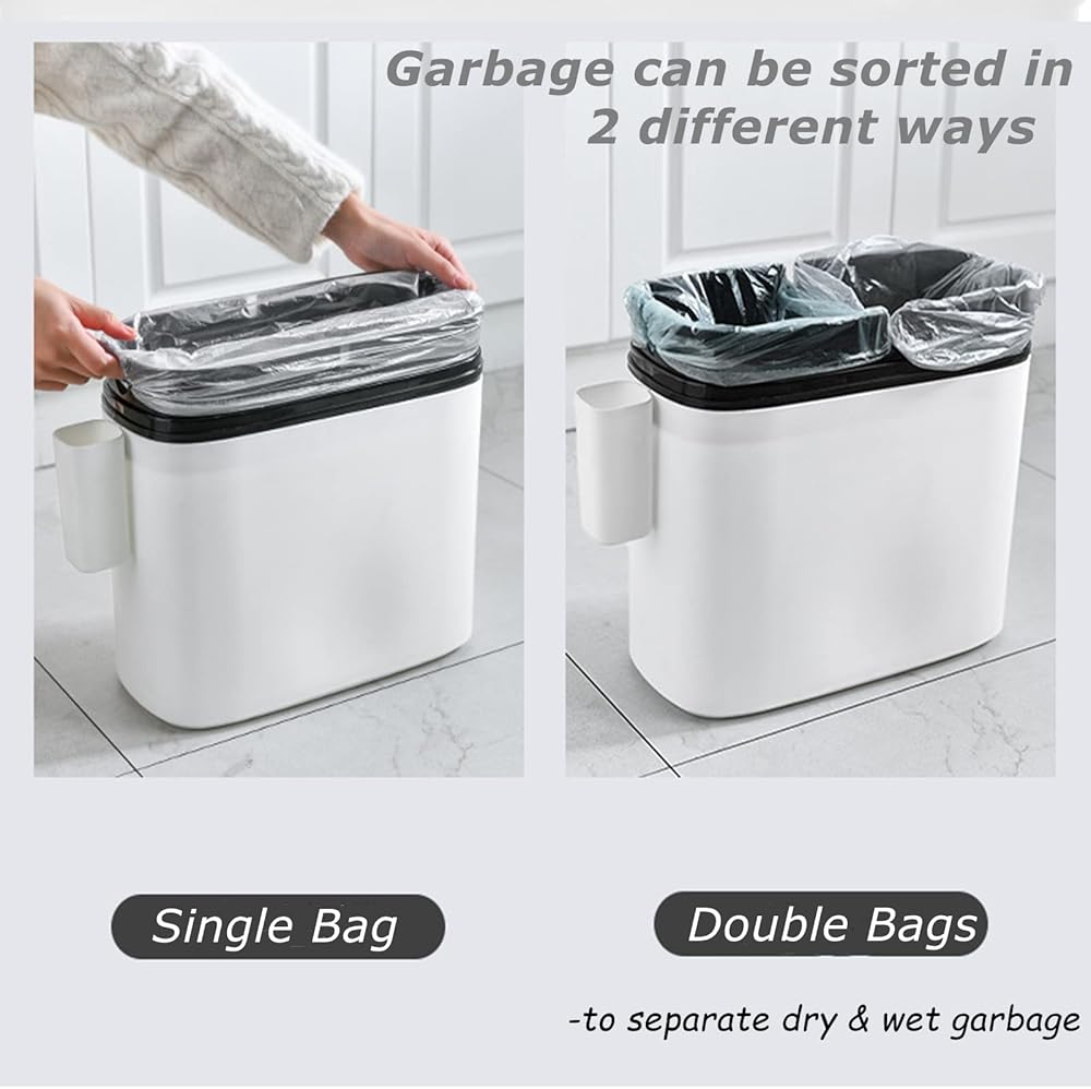 سلة مهملات رفيعة: بتصميم نحيف، مما يجعلها قادرة على وضعها في أي مساحة ضيقة أو صغيرة، والاستفادة الكاملة من كل زاوية.