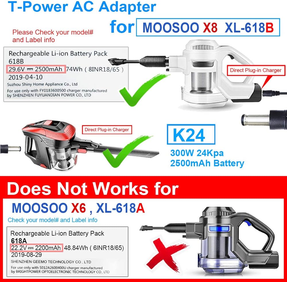 الطراز المتوافق: مكنسة كهربائية لاسلكية MOOSOO X8 XL-618B XL618B قوية 15 كيلو باسكال 30 دقيقة مع محرك متقدم بدون فرش LED 2 في 1 مكنسة كهربائية محمولة باليد