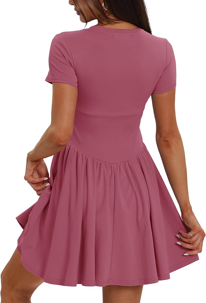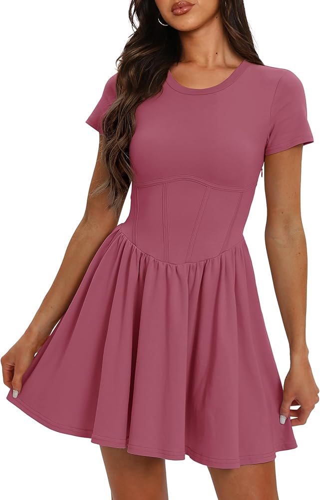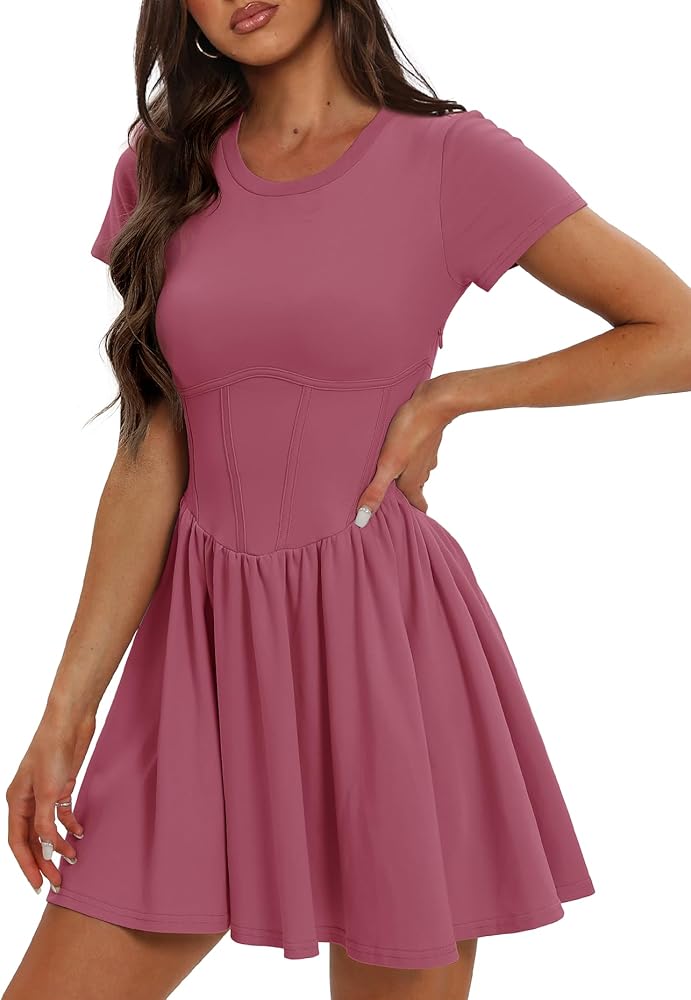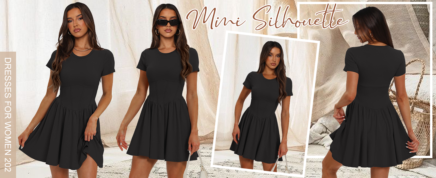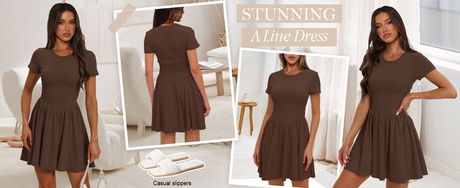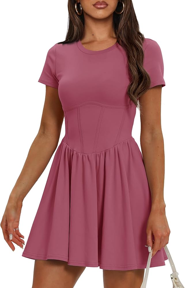 فساتين للنساء 2024: يتميز هذا الفستان الصيفي بصدرية رفيعة على شكل تي شيرت مع تصميم خصر منسدل يبرز شكلك. تضيف التنورة على شكل حرف A لمسة مرحة إلى المظهر، بينما يخلق تصميم الخصر الباسكي والطيات الجذابة عند الخصر صورة ظلية أنيقة. يعد هذا الفستان إضافة متعددة الاستخدامات لخزانة ملابسك.