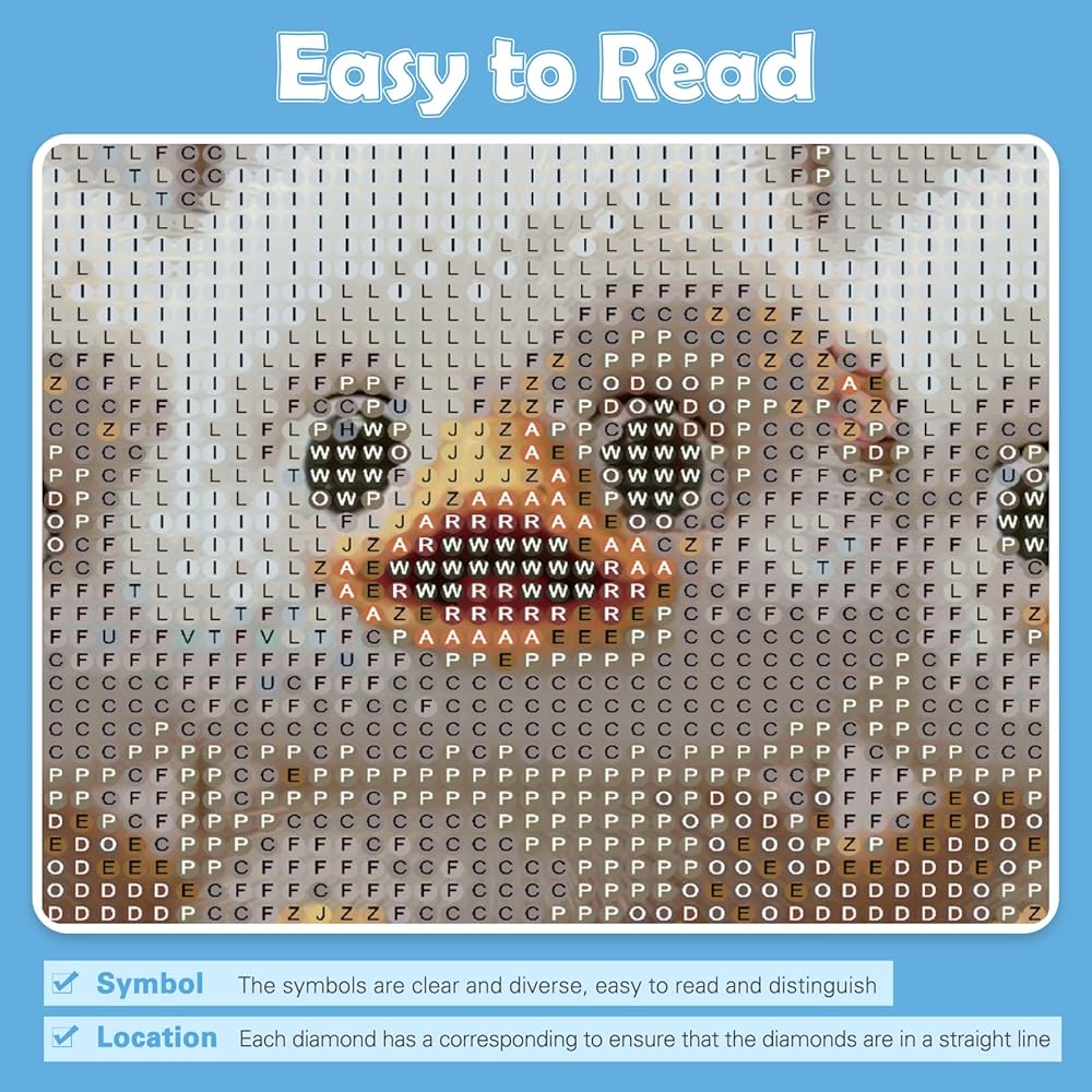 【رموز سهلة القراءة】☛ من أجل جعل عملية جعل اللوحة الفنية الماسية أكثر إثارة للاهتمام وسهلة، نستخدم رموزًا ورسومات مختلفة لتمييز مناطق الألوان المختلفة، والقماش السميك عالي الدقة، ومناطق الرسم الأكبر، حتى البالغين. من السهل على الأطفال والمبتدئين البدء